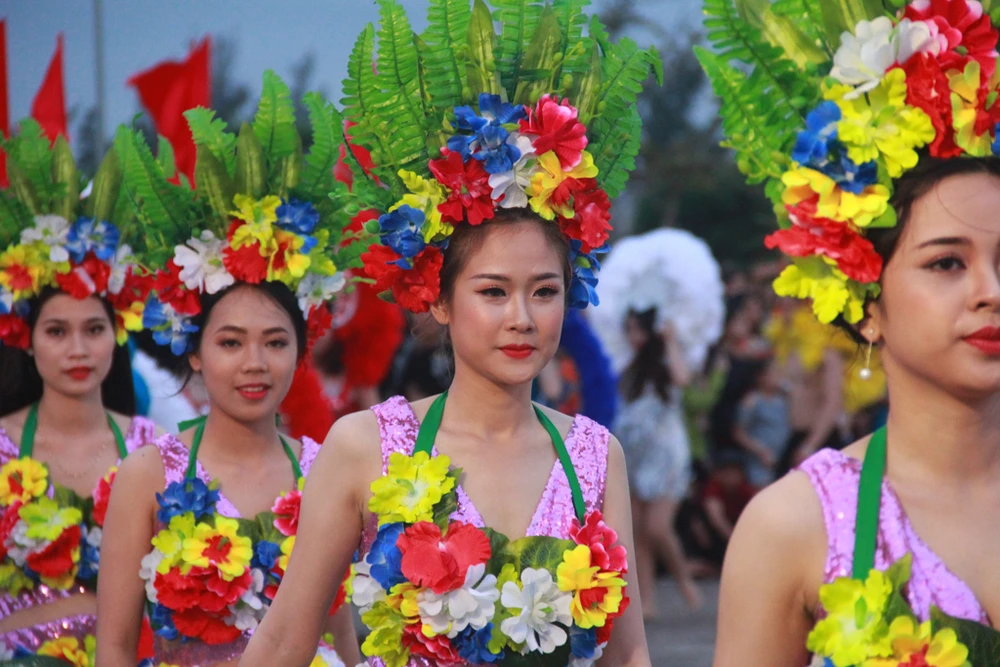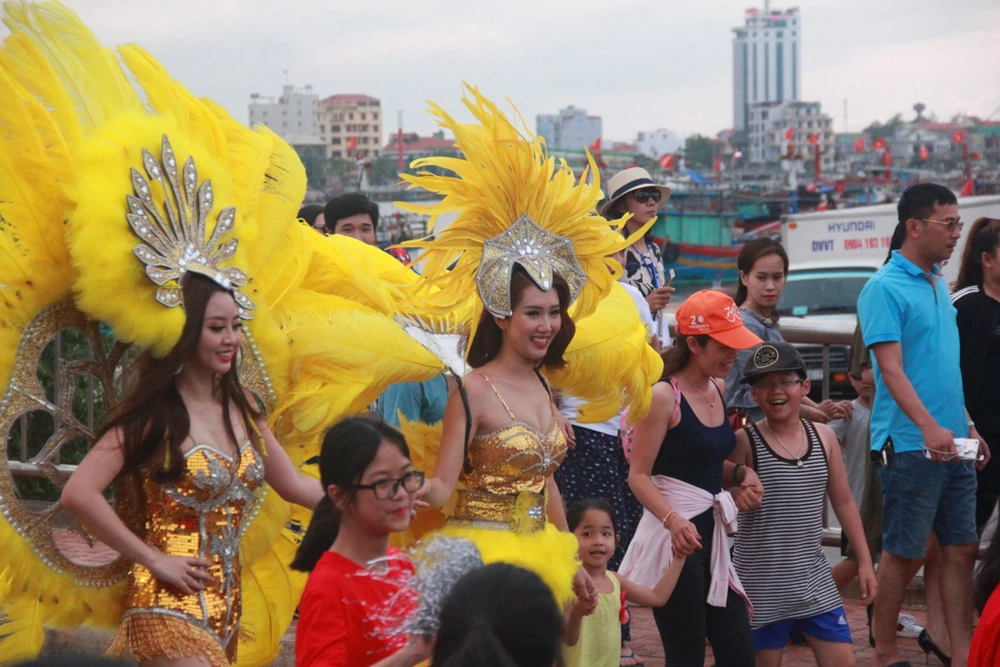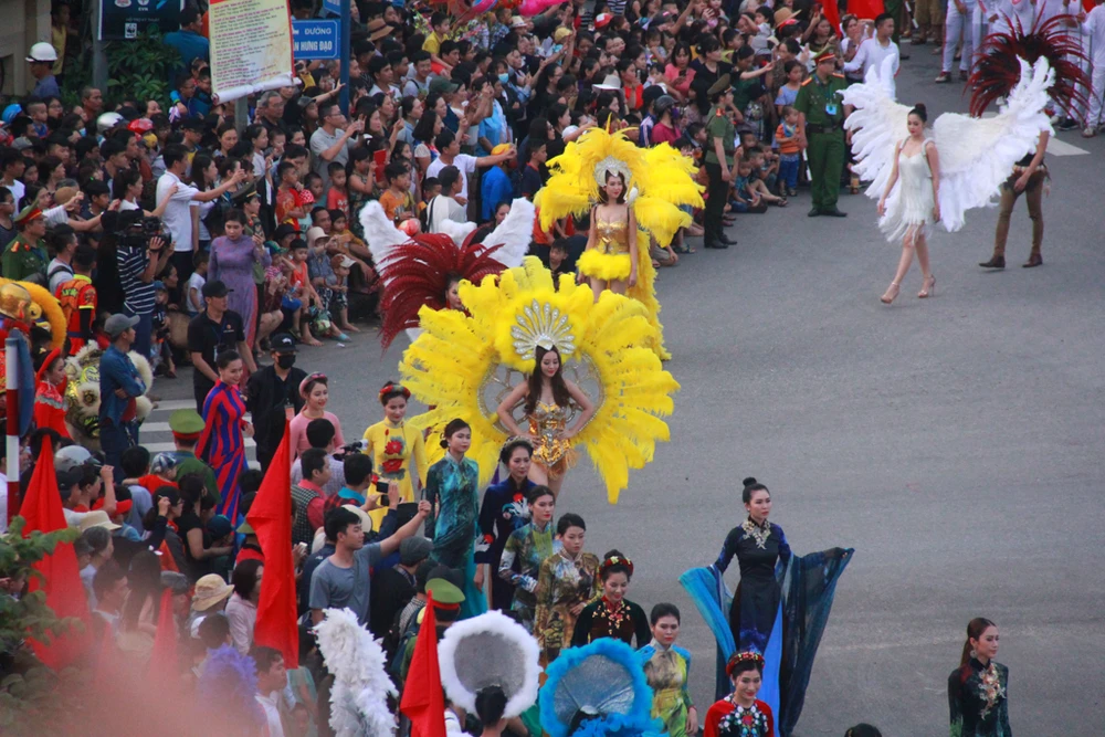 Các đoàn diễu hành xuất phát từ ba điểm chính trong TP và hội tụ tại chân cầu Nhật Lệ để biểu diễn nghệ thuật, thời trang.