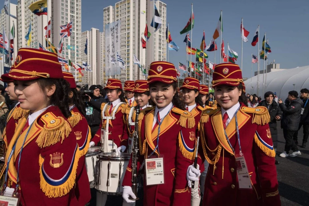 Các cô gái Triều Tiên trong dàn kèn quân đội