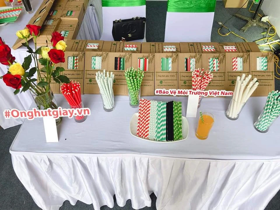 Ống hút làm từ giấy bảo vệ môi trường, nhiều kiểu dáng và nhiều màu sắc. Ảnh: AH