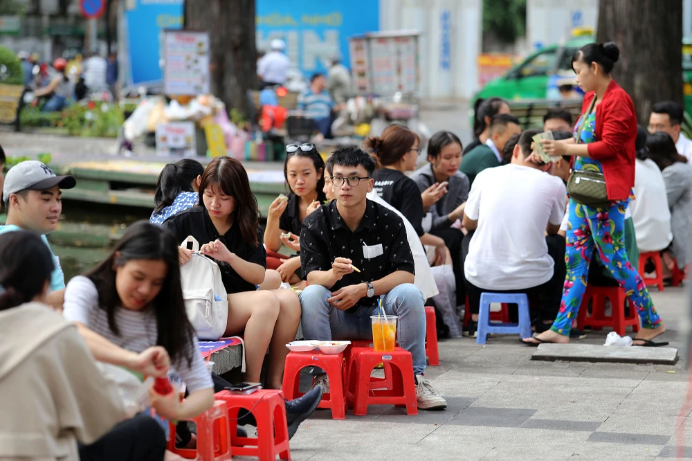 Các bạn trẻ tập trung đông ở hồ Con Rùa để vui chơi, ăn uống vào mỗi buổi chiều, tối.
