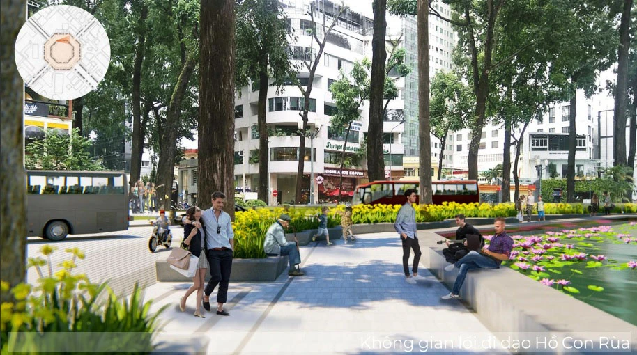Không gian lối đi dạo hồ Con Rùa. Ảnh: Theo báo cáo phương án cải tạo cảnh quan hồ Con Rùa