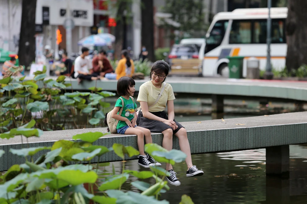 Không gian xung quanh hồ Con Rùa cũng là nơi người dân TP thường lui tới vui chơi, giải trí, thưởng thức các món ăn vặt.