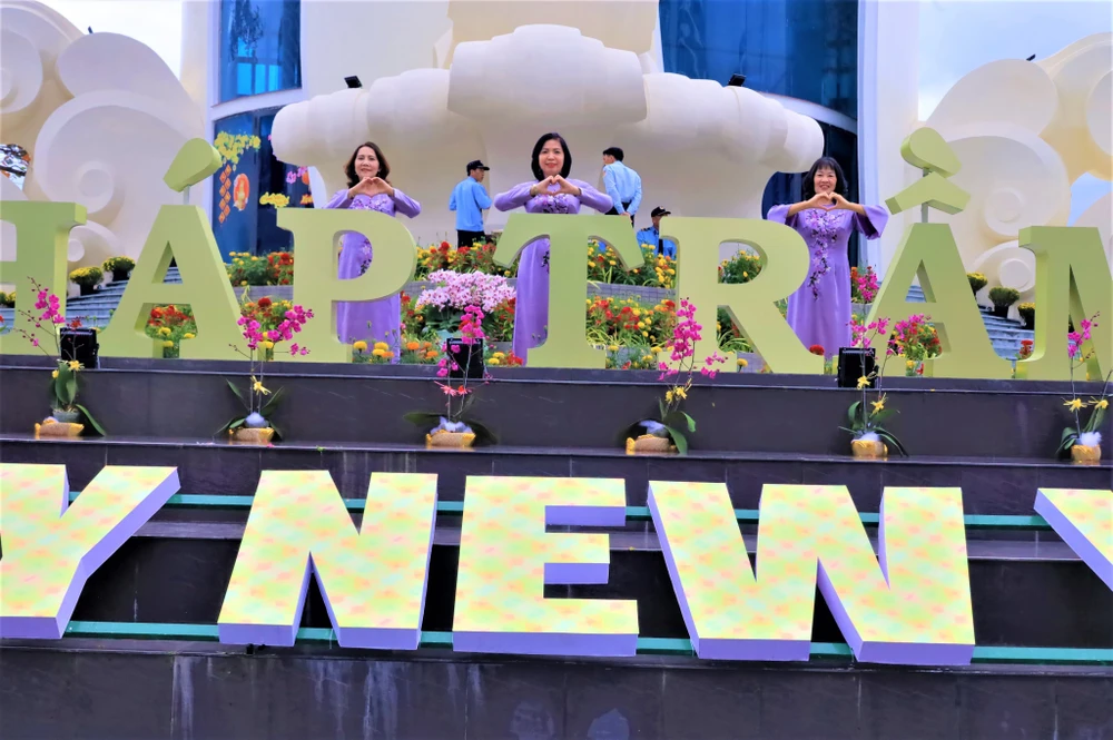 Tháp Trầm Hương thu hút nhiều người dân đến tham quan, chụp ảnh dịp Tết này. |