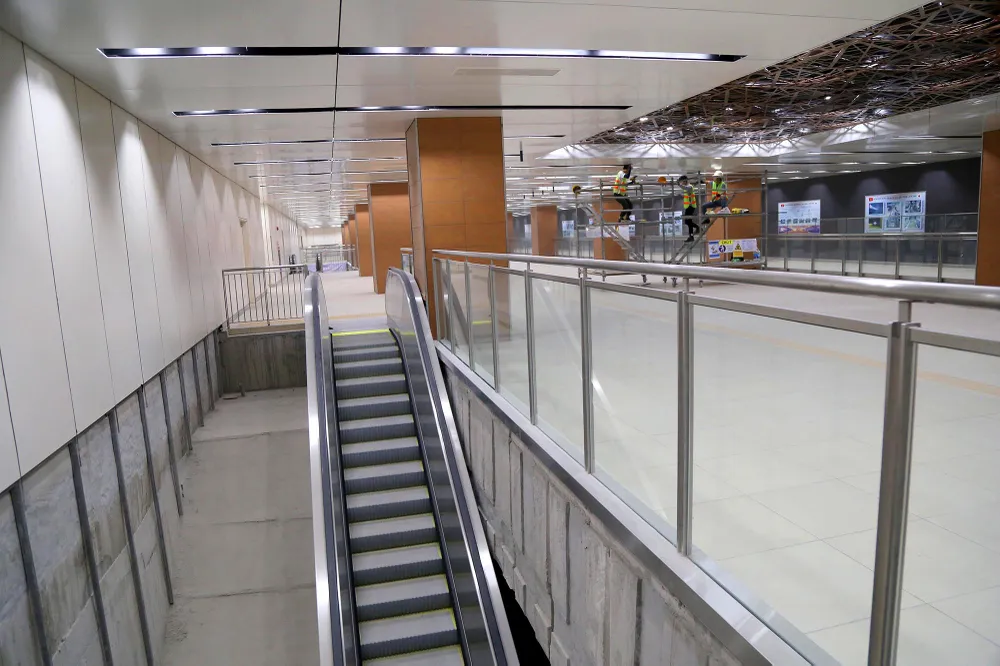 Tầng B1 của ga Nhà hát TP đã hoàn thiện, các kỹ sư công nhân đang tiếp tục thi công các lối lên xuồn và hoàn thiện trang trí các tầng B2, B3 và B4.