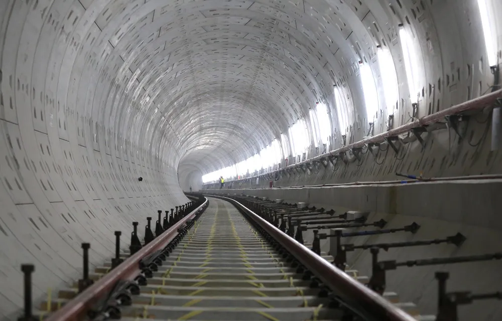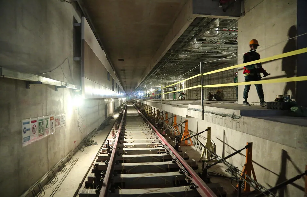 Đường hầm dẫn từ ga Nhà hát TP đến ga Ba Son đã lắp đặt xong hệ thống đường ray.