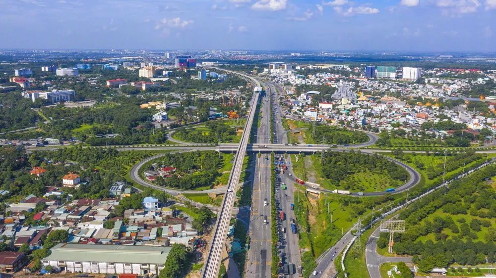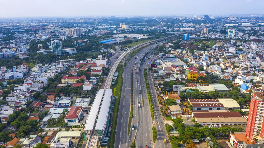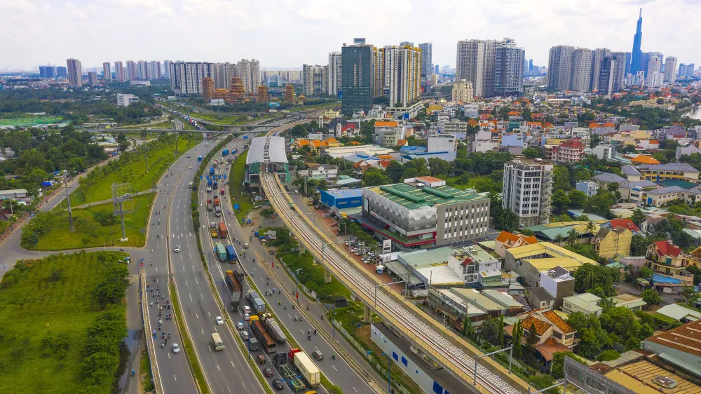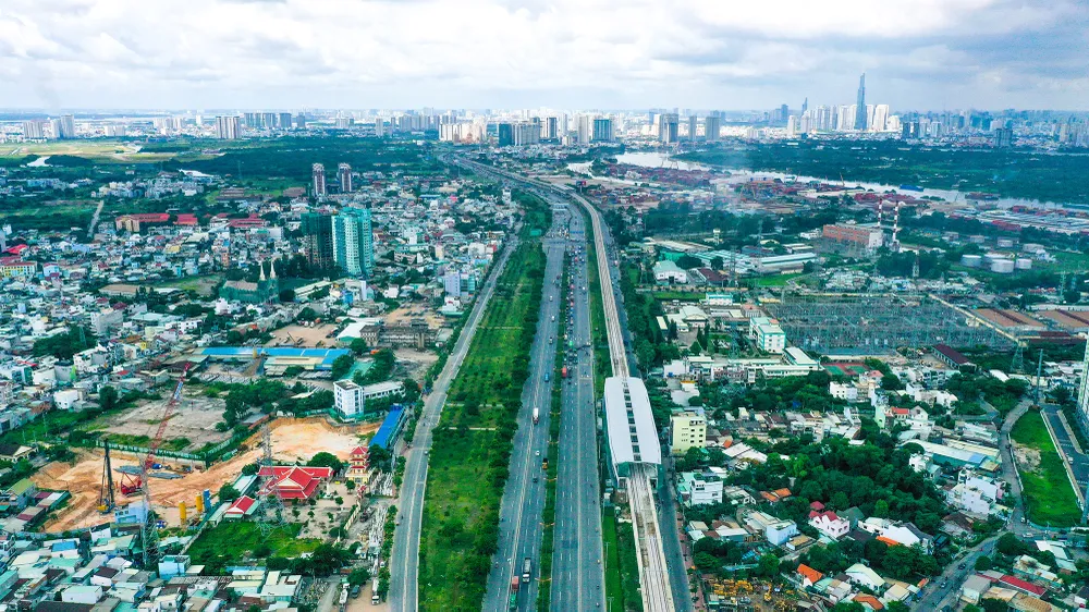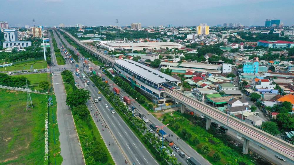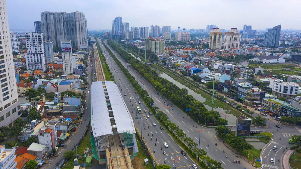 Vừa qua cầu Sài Gòn, tuyến metro số 1 chạy dọc đường Xa lộ Hà Nội.