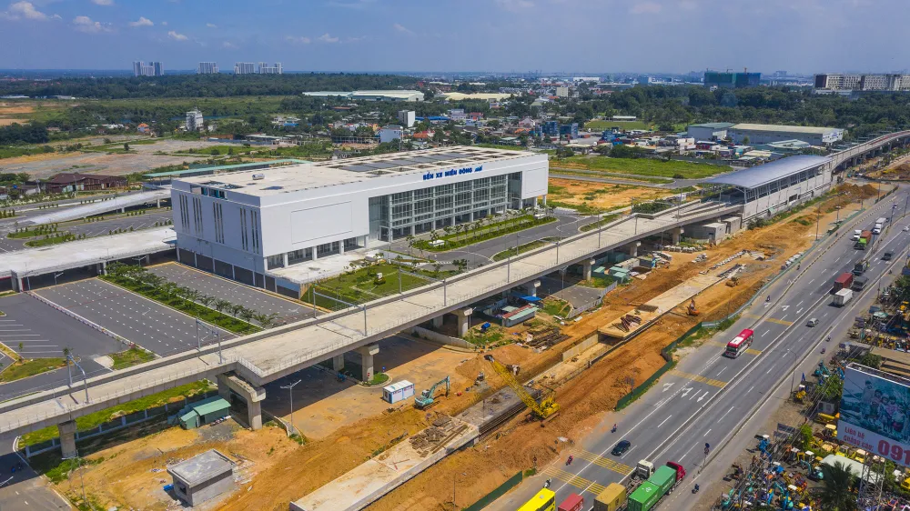 Tuyến metro chạy ngang qua Bến xe miền Đông mới chuẩn bị vào Depot Long Bình (quận 9).