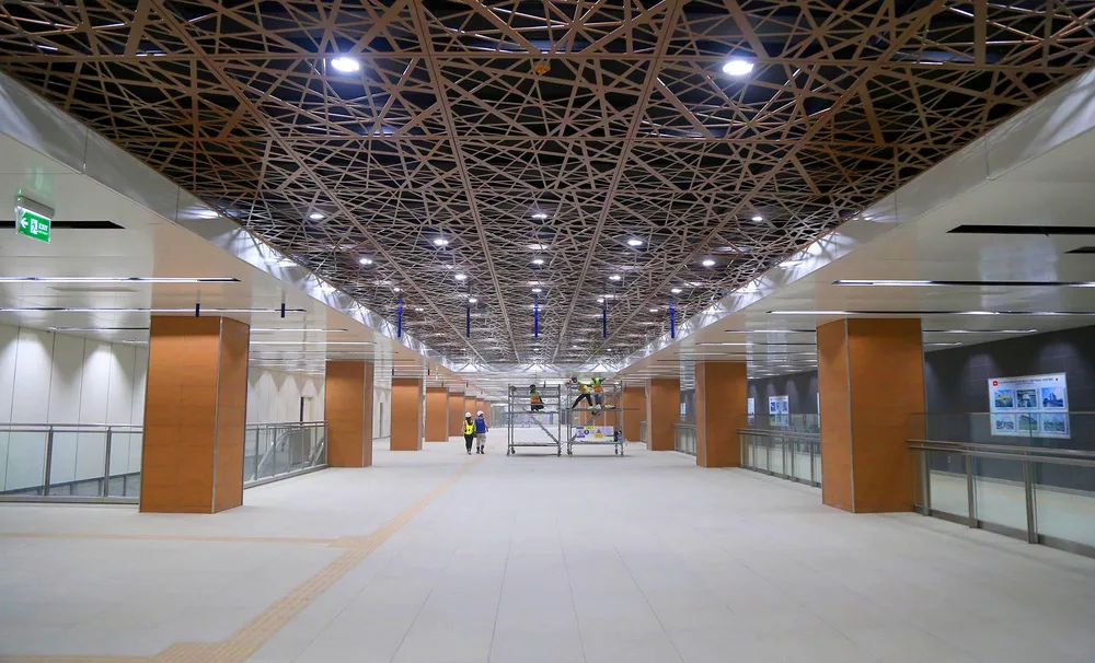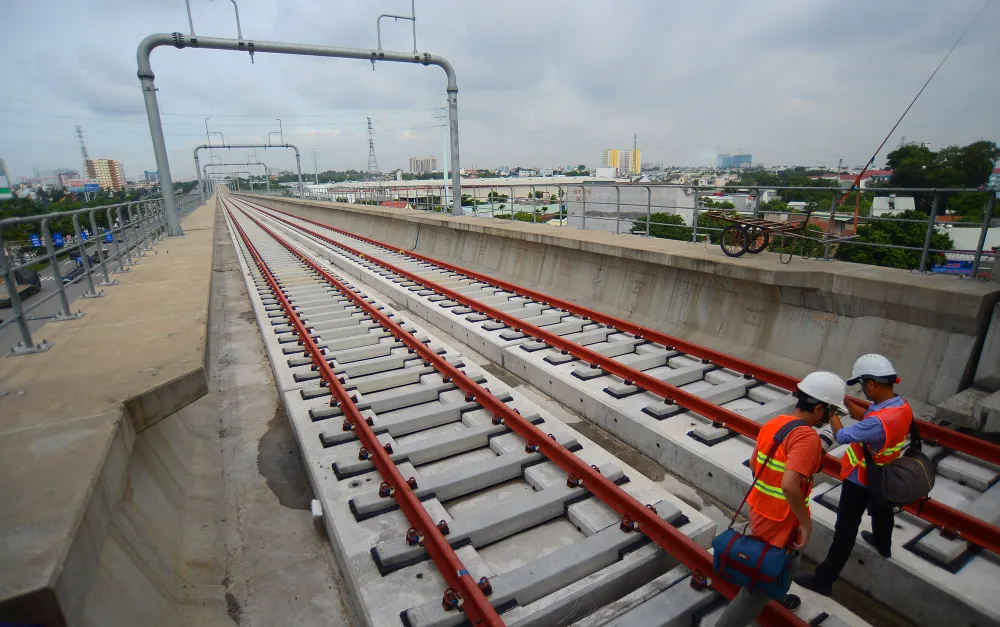 Đối với đoạn trên cao, công tác lắp đặt đường ray đã hoàn tất. Hiện các nhà thầu đang hoàn thành việc thi công, trang trí, lợp mái ở các nhà ga.