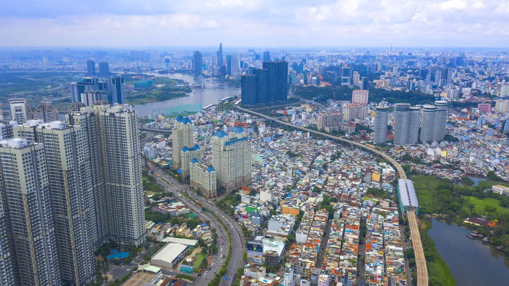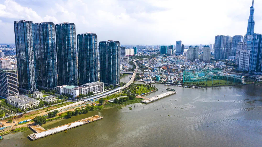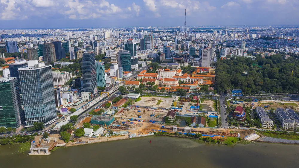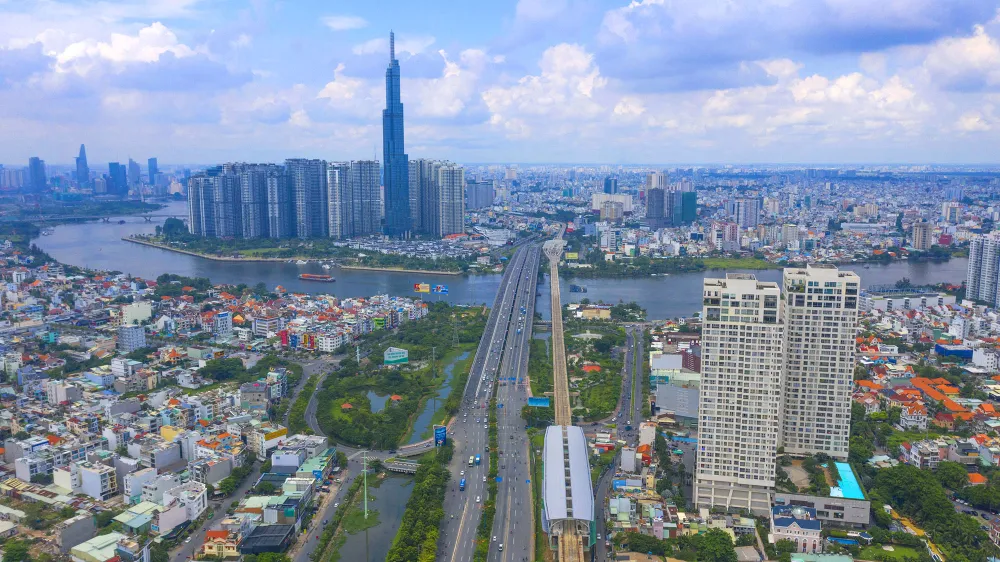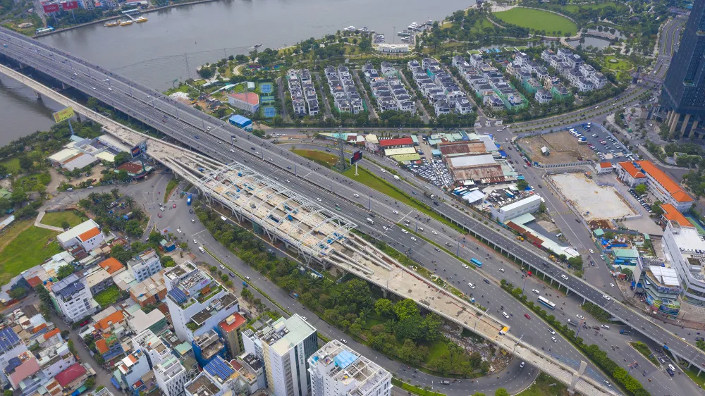 Tuyến metro số 1 chạy song song với cầu Sài Gòn hướng về trung tâm TP.