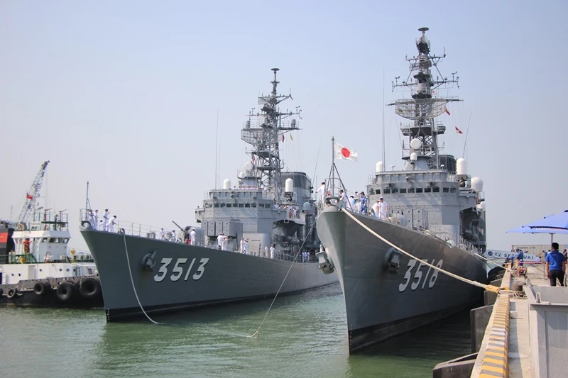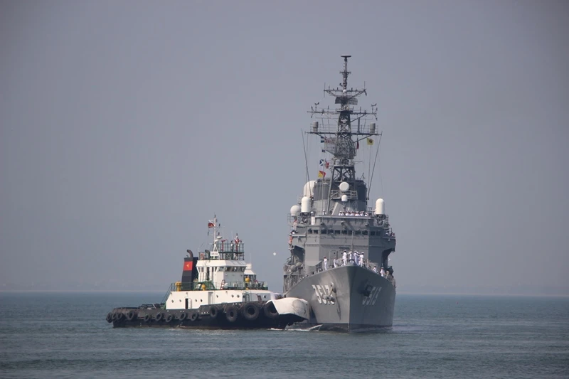 Hai tàu huấn luyện Nhật Bản mang theo 390 sĩ quan và thủy thủ. Ảnh: TẤN VIỆT