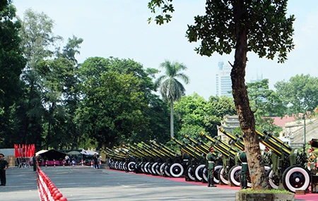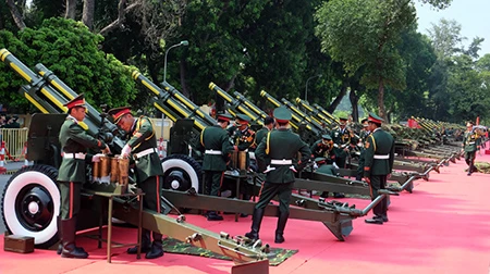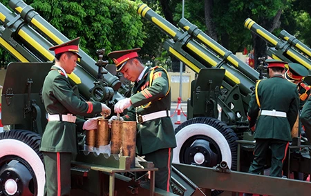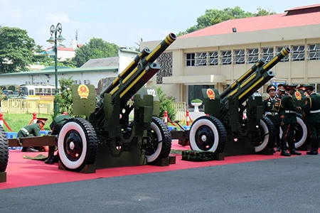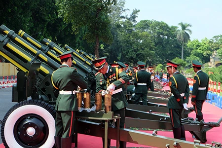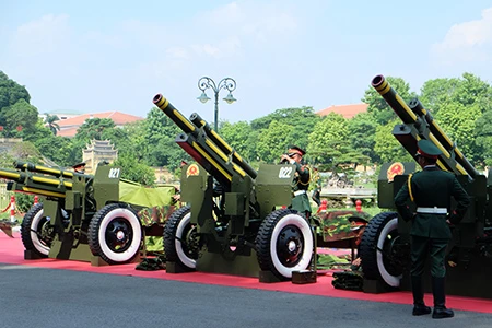 Theo đó, sẽ có 5 cụm với tổng cộng 21 loạt bắn, trên mỗi đầu pháo đều đánh số thứ tự và gắn hình quốc huy. Loại pháo được sử dụng là M2A1 105 mm (lựu pháo), nằm trong bốn loại hỏa pháo cơ bản của pháo binh.