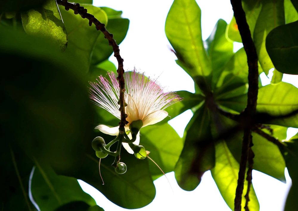 Ban ngày hoa bàng vuông chỉ là những nụ màu trắng buốt, rất hiếm hoi để nhìn thấy hoa nở bung.