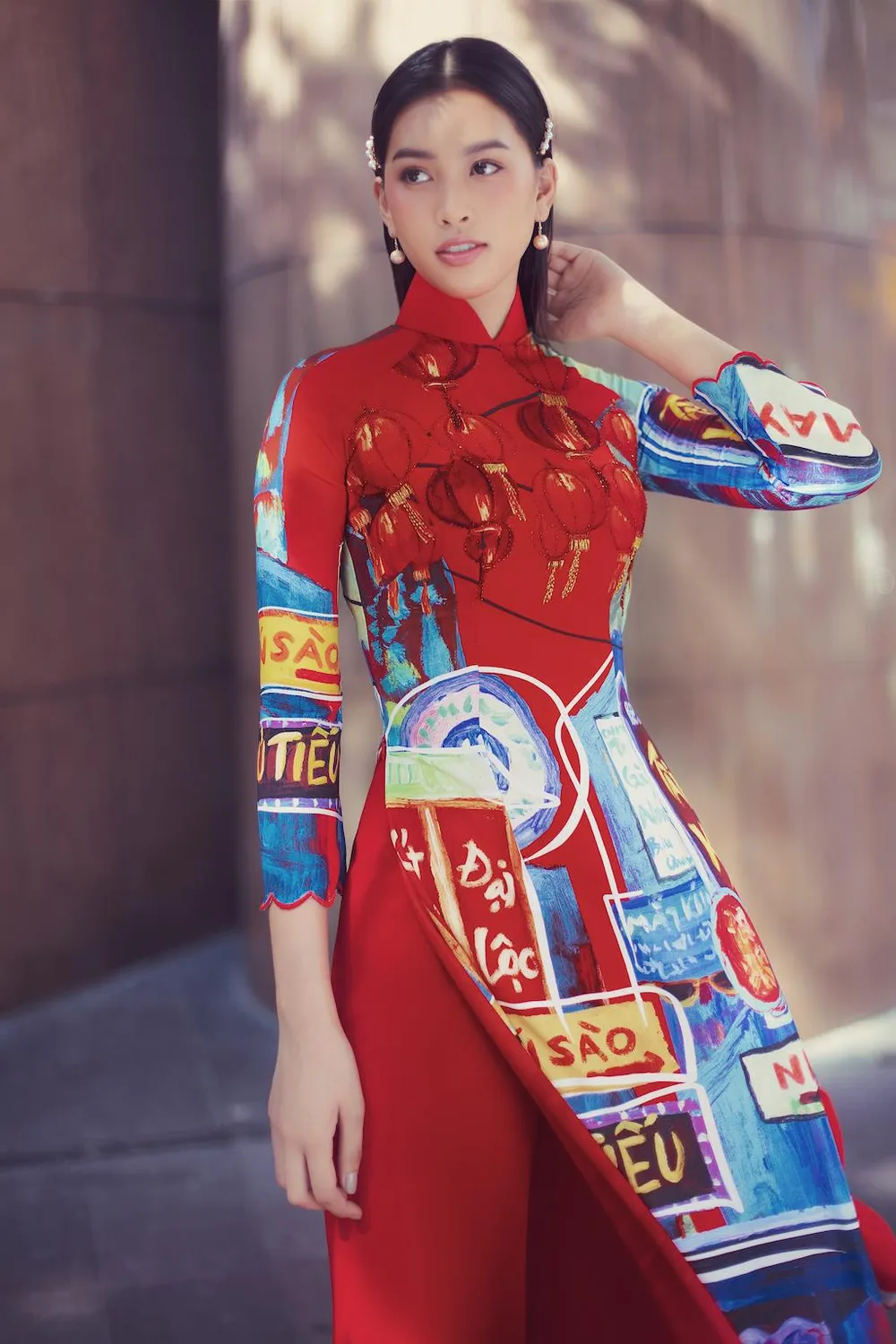 Các hình ảnh, phong cách vẽ, màu sắc được lựa chọn cho bộ sưu tập lần này tươi sáng theo xu hướng thời trang của thế giới. Một điểm nhấn khác của thiết kế trong bộ sưu tập này chính là tay áo cách điệu. Thiết kế tay lửng đã tạo sự năng động nhưng không kém phần nữ tính nhờ các đường thêu rô-đê nhấn ở tay hay tà áo.