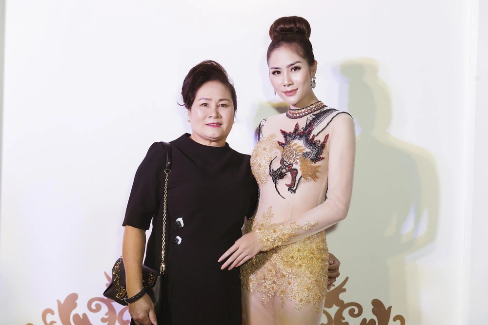Nhân dịp mẹ vào Sài Gòn thăm con gái, á hậu Hoàng Hạnh đã dẫn mẹ đến tham gia sự kiện. Người đẹp nhanh chóng trở thành tâm điểm sự kiện với thiết kế xuyên thấu đính kết cầu kỳ của Tommy Nguyễn. Với chiều cao 1m76, Hoàng Hạnh ưu tiên chọn những bộ trang phục tôn dáng và khoe được đôi chân dài.