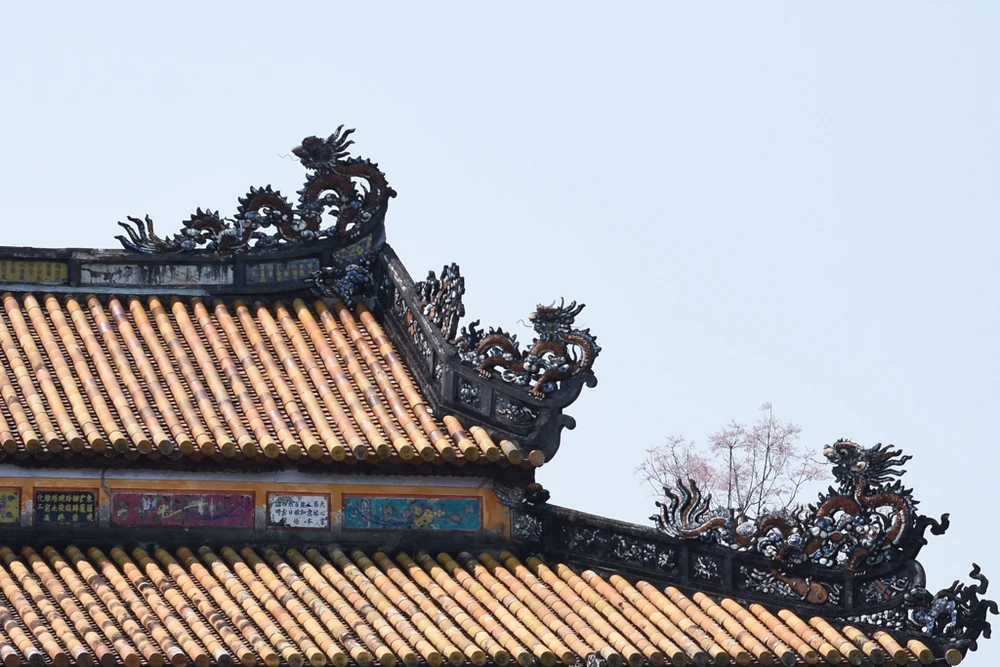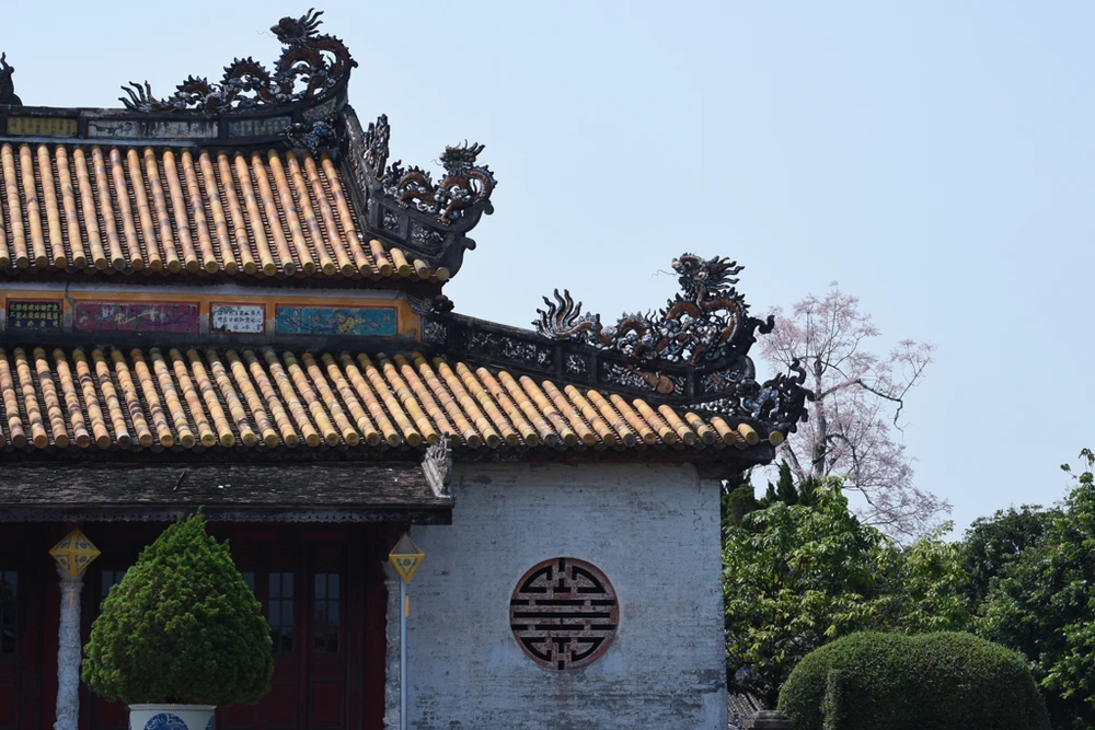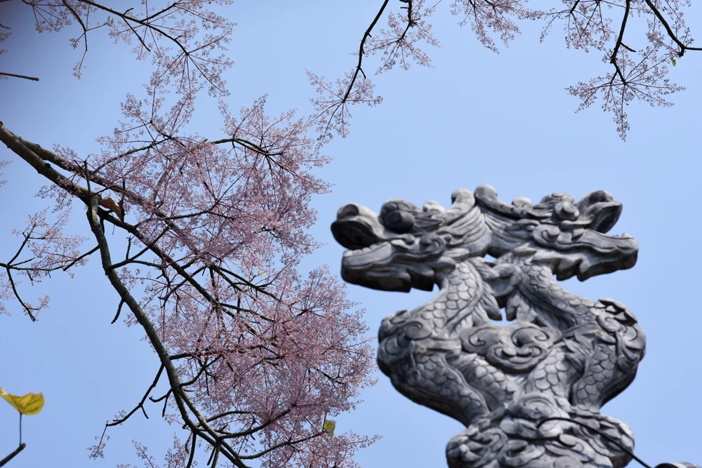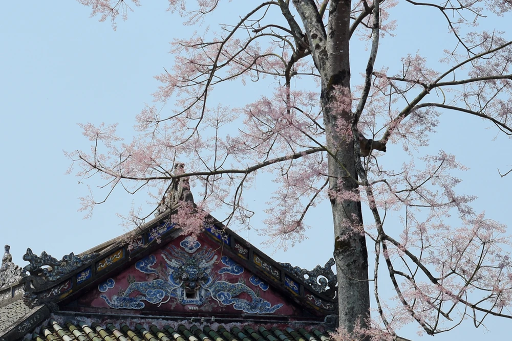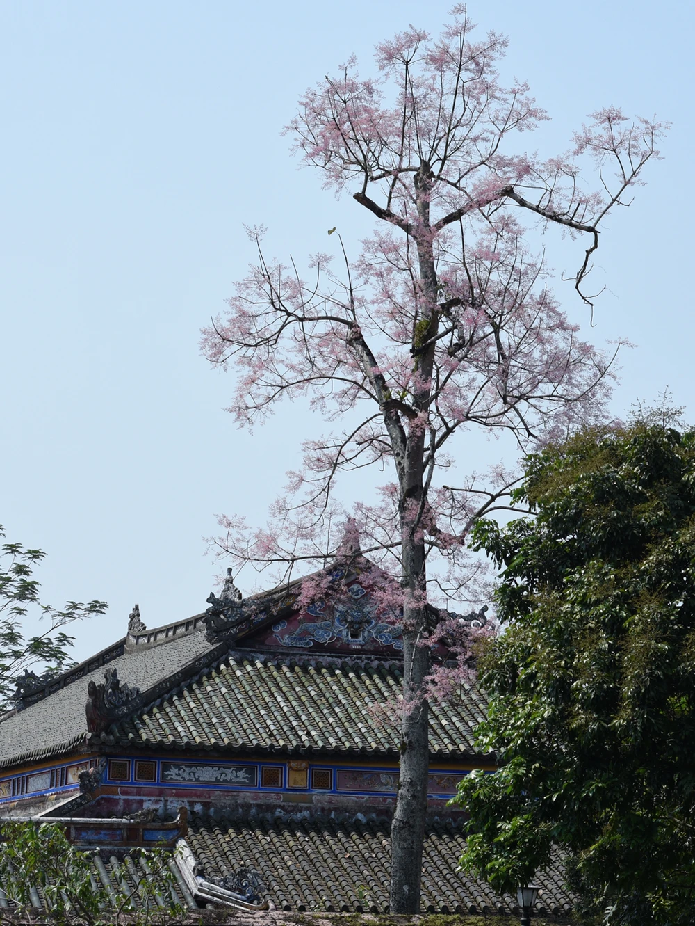 Vào những ngày giữa tháng 2 và tháng 3 âm lịch, du khách đến Huế có thể chiêm ngưỡng sắc hoa ngô đồng bên kiến trúc cổ kính của cung đình xưa - một vẻ đẹp Huế "chẳng nơi nào có được". Ảnh: NGUYỄN DO