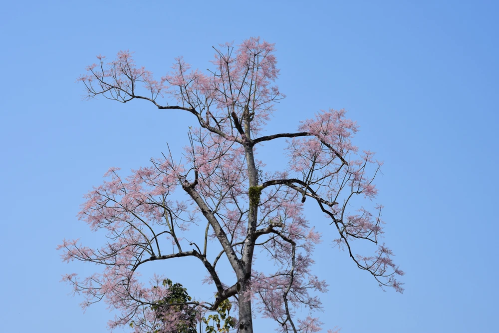 Khi đơm hoa, ngô đồng trút hết lá rồi phô kết những chùm hoa nho nhỏ, dày đặc trên cành, hoa có màu tím nhạt. Ảnh: NGUYỄN DO
