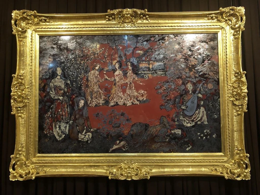 Tác phẩm sơn mài Vườn Xuân của hoạ sĩ Nguyễn Gia Trí sáng tác năm 1970 tại tư gia của nhà sưu tập Trần Hậu Tuấn.
