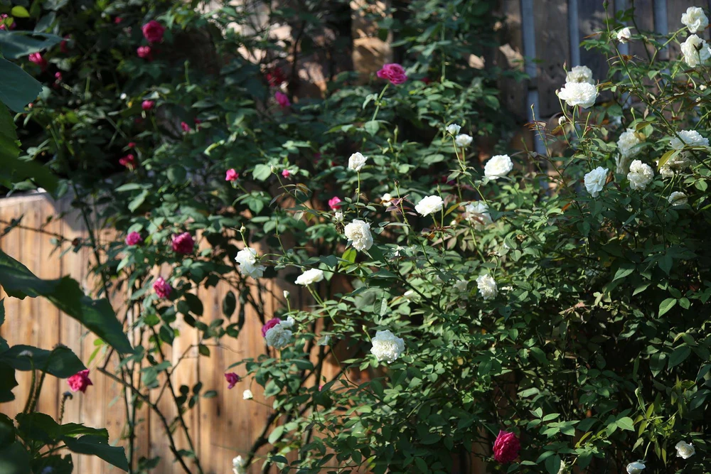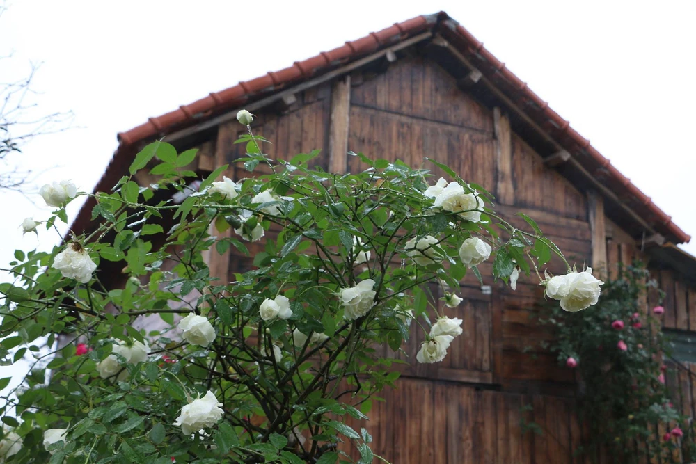 Dàn hồng cổ Sapa và Hồng Bạch Xếp chen chúc nhau làm góc tường trở nên lãng mạn.