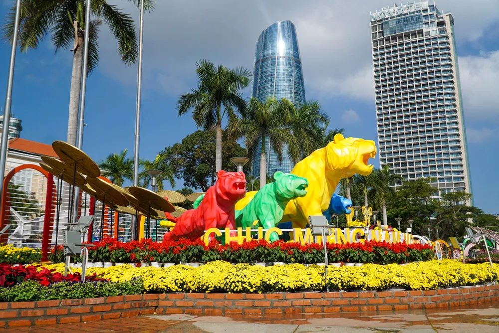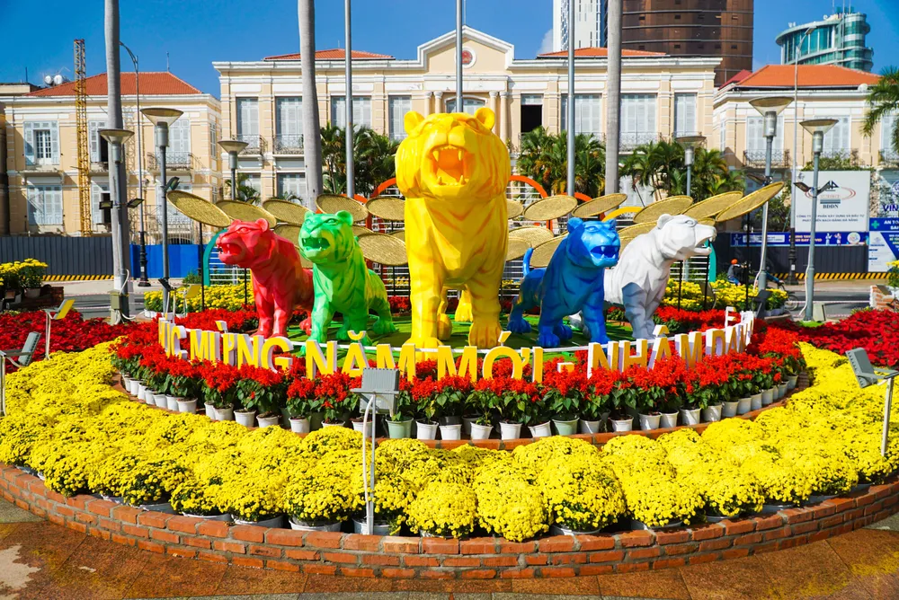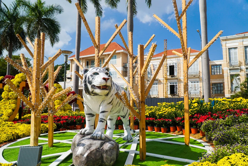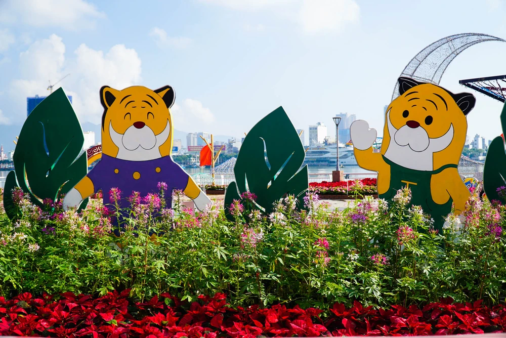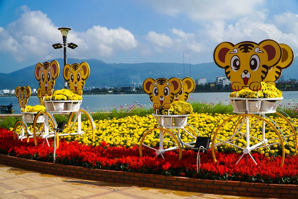 Năm nay, TP Đà Nẵng đã đầu tư hơn 8,6 tỉ đồng để trang trí hoa và điện chiếu sáng phục vụ Tết Nhâm Dần. Đường hoa được đặt ở dọc tuyến đường Bạch Đằng với nhiều cụm tiểu cảnh xen vào điểm nhấn là những linh vật hổ với nhiều hình dáng độc đáo, đa dạng sắc màu.