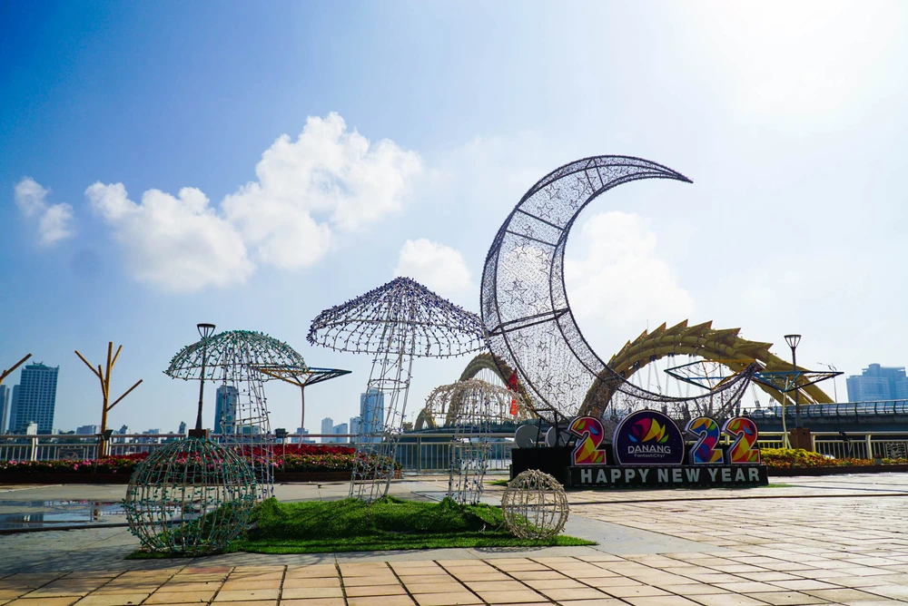 Được biết, chủ đề đường hoa Đà Nẵng 2022 là "Khát vọng vươn cao". Ý tưởng trang trí là những cánh sao gắn linh vật hổ theo hình khối, những tán cây vươn cao, những chiếc lá bài trí hợp lý để tạo cảnh quan thiên nhiên.
