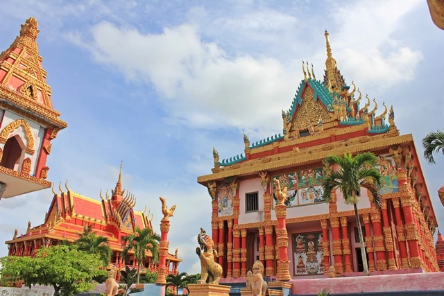 Nơi đây còn có nhiều ngôi chùa Khmer được xây cất tỉ mỉ và rực rỡ những sắc màu.