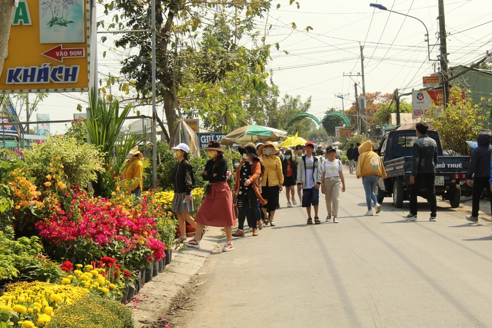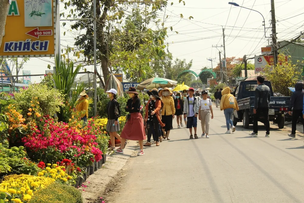 Đặc biệt, con đường Cai Dao-Sa Nhiên như mọi năm luôn tấp nập người đi ngắm hoa, mua hoa.