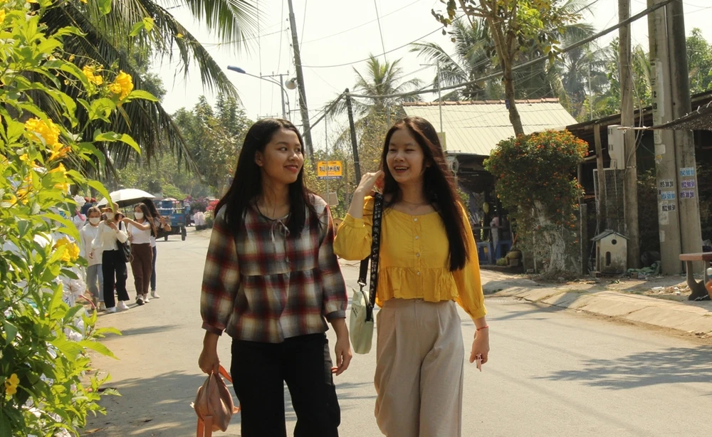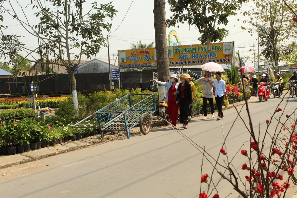 Nhiều người không quản trời nắng dạo chơi trên đường hoa Cai Dao - Sa Nhiên.