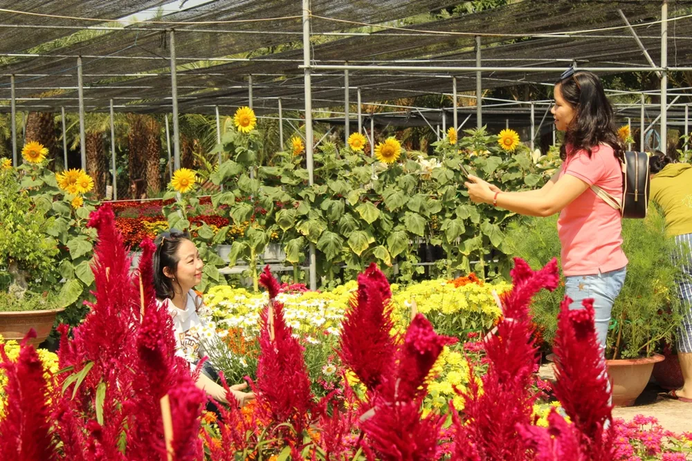 Thời gian này hoa đã chuyển đi các nơi gần hết nhưng trong nhiều vườn vẫn còn rất nhiều các chậu hoa với đủ sắc màu rực rỡ làm nao lòng các lữ khách phương xa đến chơi.