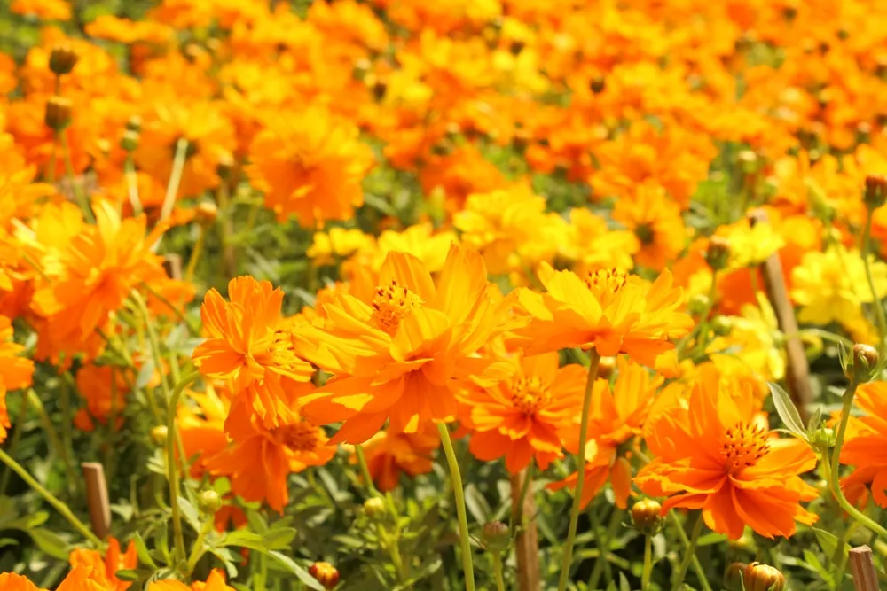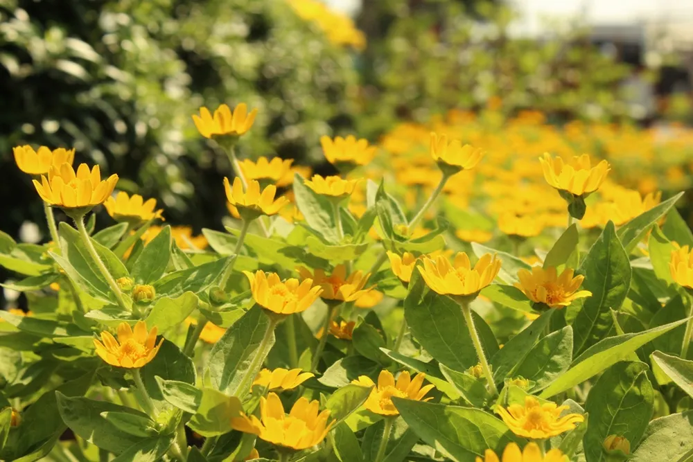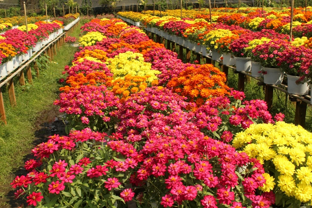 Hoa được sắp thành hàng trên những luống cao rất đẹp mắt.