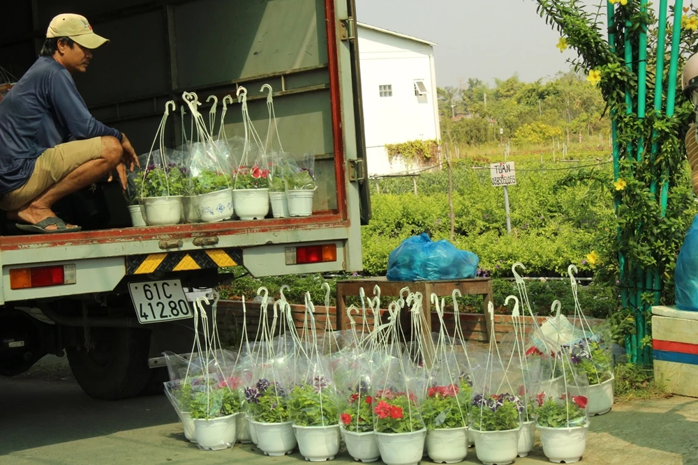 Đưa hoa về các nhà chuẩn bị đón Tết.