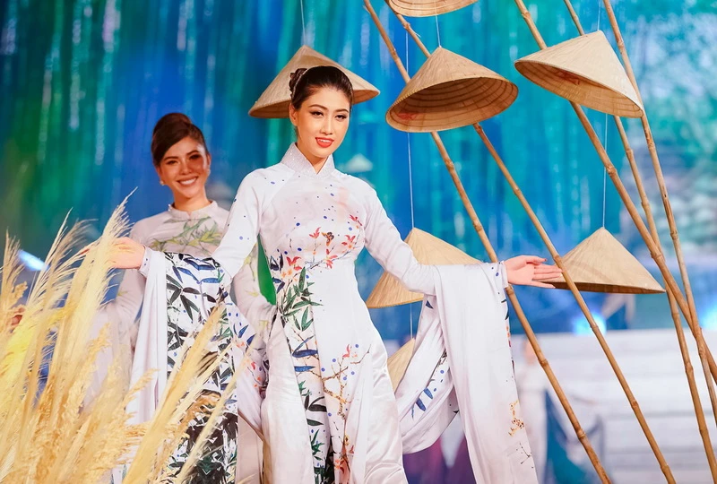 Tham gia Lê hội Áo dài TP.HCM, nhà thiết kế Việt Hùng tạo sự chú ý riêng với bộ sưu tập áo dài Trúc Việt.