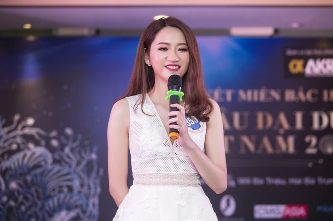 Các thí sinh tham gia vòng sơ tuyển phải vượt qua 3 vòng thi là: tự thuật; trình diễn và trả lời phỏng vấn với ban giám khảo. Trong ảnh: Thí sinh Nguyễn Thu Huyền - sinh viên Đại học Điện lực. Cô được ban giám khảo nhận xét có một số nét giống Hoa hậu Nguyễn Cao Kỳ Duyên. Thu Huyền 19 tuổi, cao 1,7 m, số đo ba vòng 84-67-90 cm.