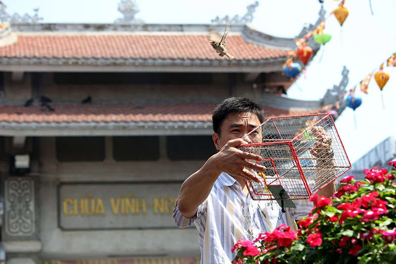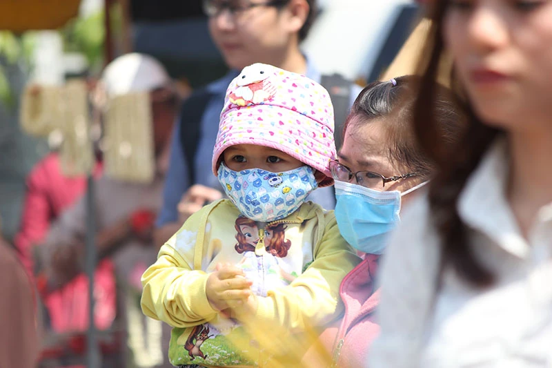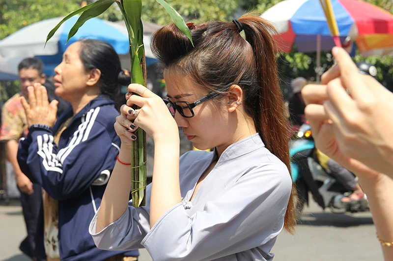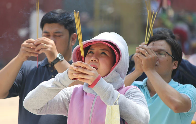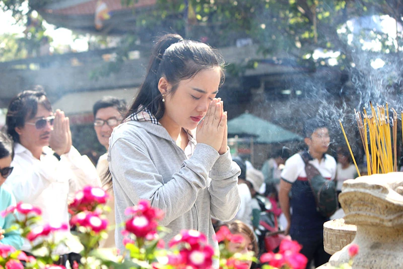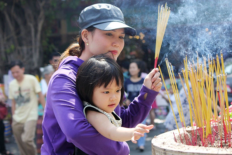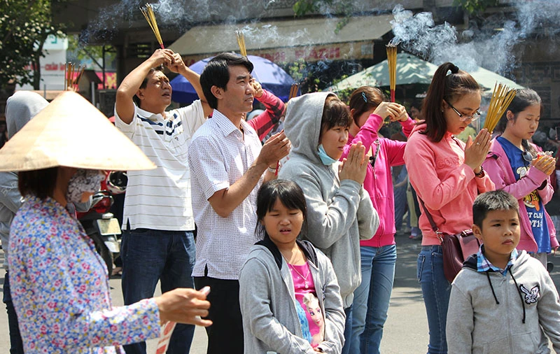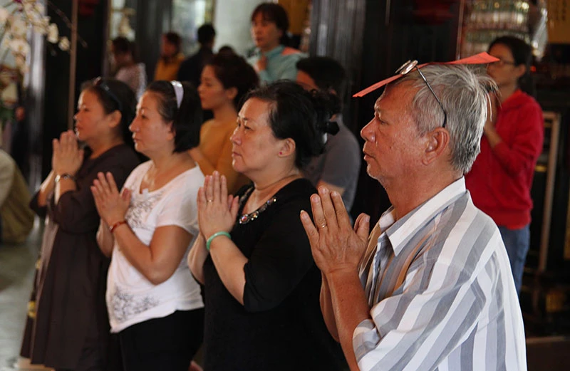Người dân đi chùa Việt Nam Quốc Tự (quận 10). Ảnh: HOÀNG GIANG