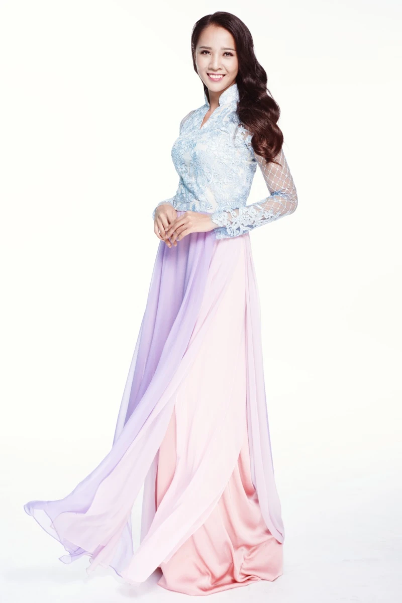 Bộ sưu tập áo dài bằng chất liệu tơ tằm sử dụng ba tông màu chủ đạo dựa trên màu hồng, trắng và xanh tím của hoa sen.