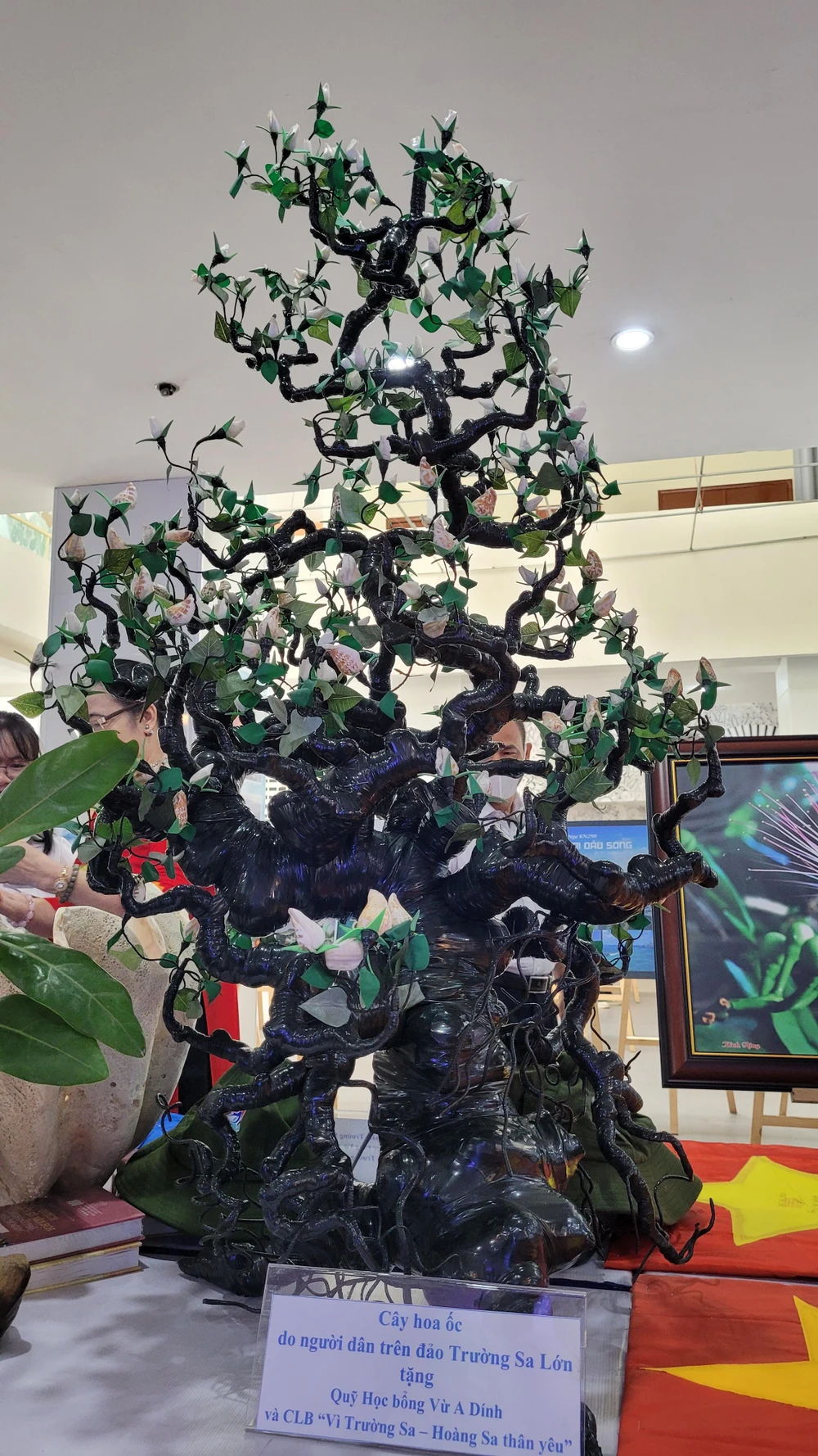 Lá cờ Tổ quốc do các đảo và nhà giàn thuộc quần đảo Trường Sa tặng Quỹ học bổng Vừ A Dính và CLB Vì Hoàng Sa - Trường Sa thân yêu. |