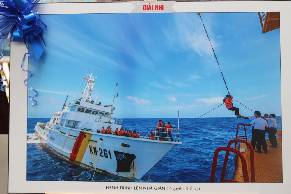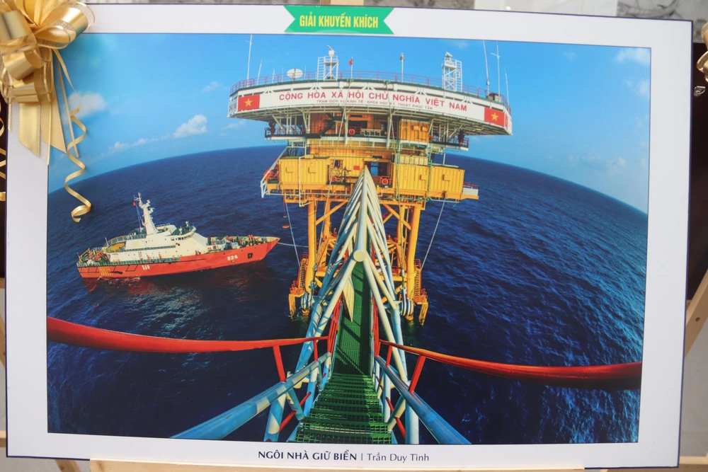 Nghệ sĩ nhiếp ảnh Trần Duy Tình nhận giải nhất cuộc thi ảnh với chủ đề “Hoàng Sa – Trường Sa – Nhà giàn DK1 trong trái tim tôi”. Ảnh: HL |