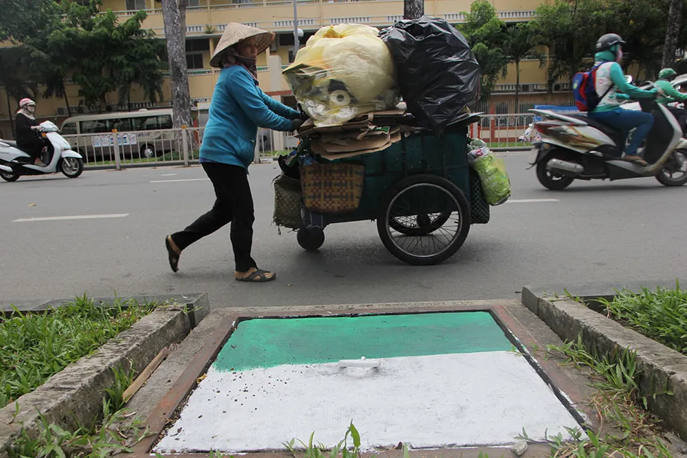 Chú Sáu hằng ngày di chuyển trên đoạn đường này cho biết từ khi được vẽ tranh thấy các nắp cống đẹp hẳn, mong là mọi người nhìn vào sẽ ý thức hơn trong việc không xả rác xuống miệng cống, bảo vệ môi trường.