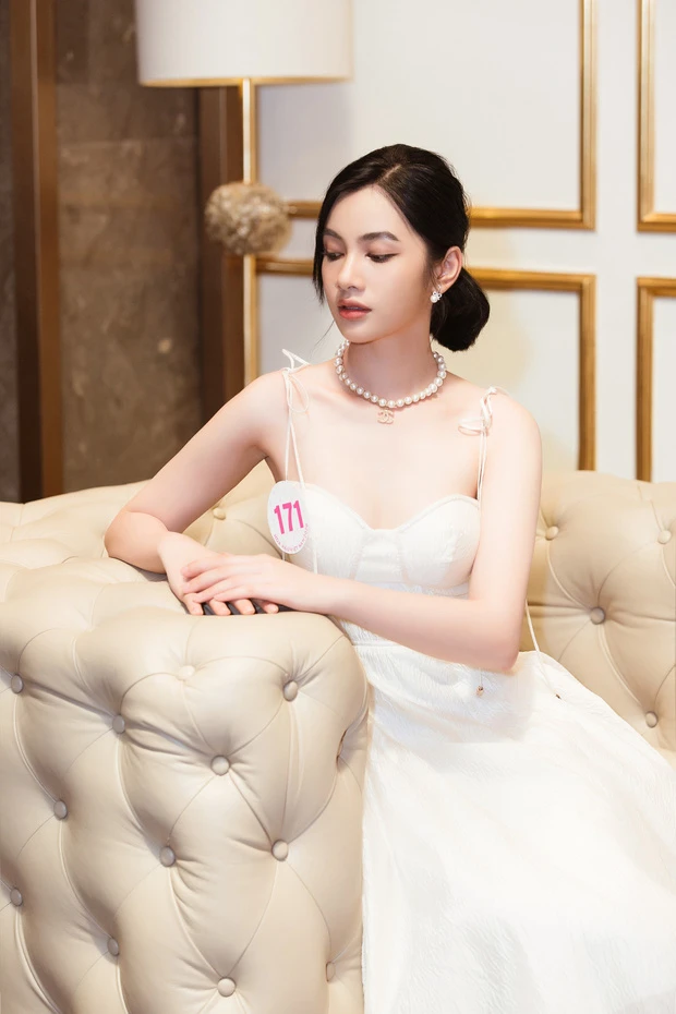 Ngọc Minh chia sẻ: “Hoa hậu Trần Tiểu Vy hay rất nhiều người đẹp khác đều chứng minh rằng chúng ta có thể làm nên điều kỳ diệu ở tuổi 18. Em nghĩ mình có thể làm được hoặc ít nhất sẽ tạo được dấu ấn riêng tại cuộc thi. Bản thân em đã chuẩn bị tinh thần và kĩ năng để hoàn thành một cách tốt nhất”. Ảnh: BTC