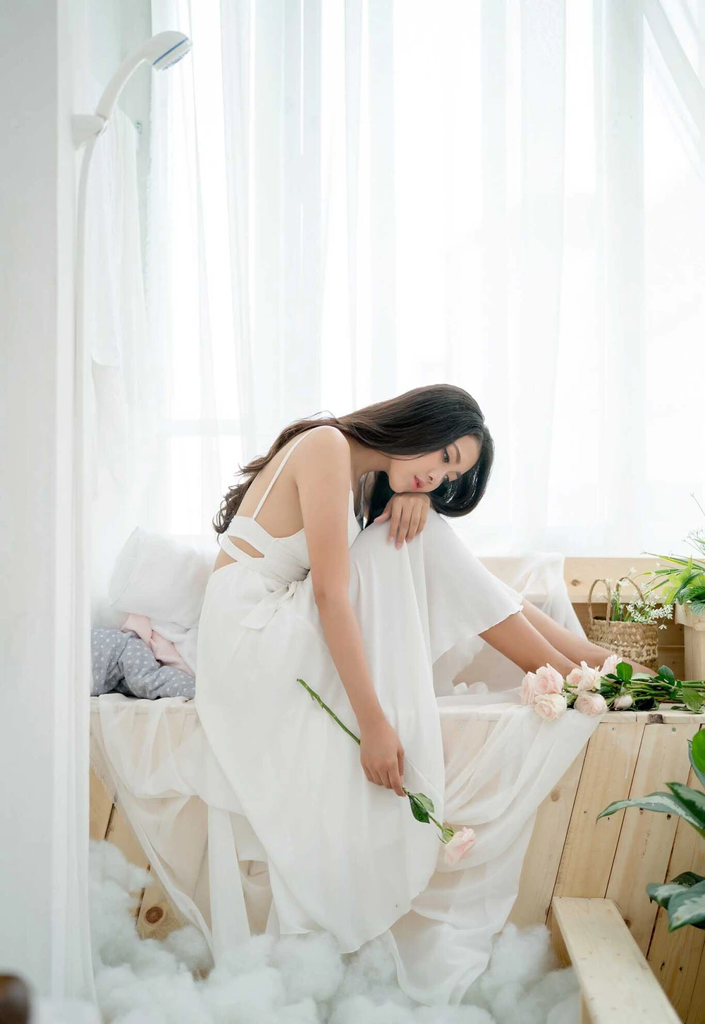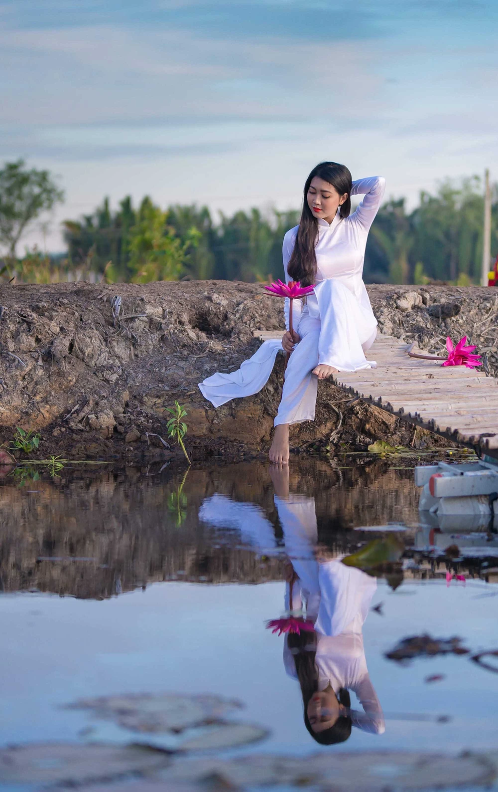 “Áo dài mang một vẻ đẹp truyền thống, tôn lên được vẻ đẹp dịu dàng thướt tha nhưng cũng không kém phần mặn mà của người con gái Việt. Và đây cũng là một nguồn cảm hứng vô tận của những người yêu nghệ thuật, yêu thích chụp ảnh. Vì thế, áo dài luôn là lựa chọn đầu tiên và tự tin nhất của em khi chụp ảnh” - Hoa tâm sự.