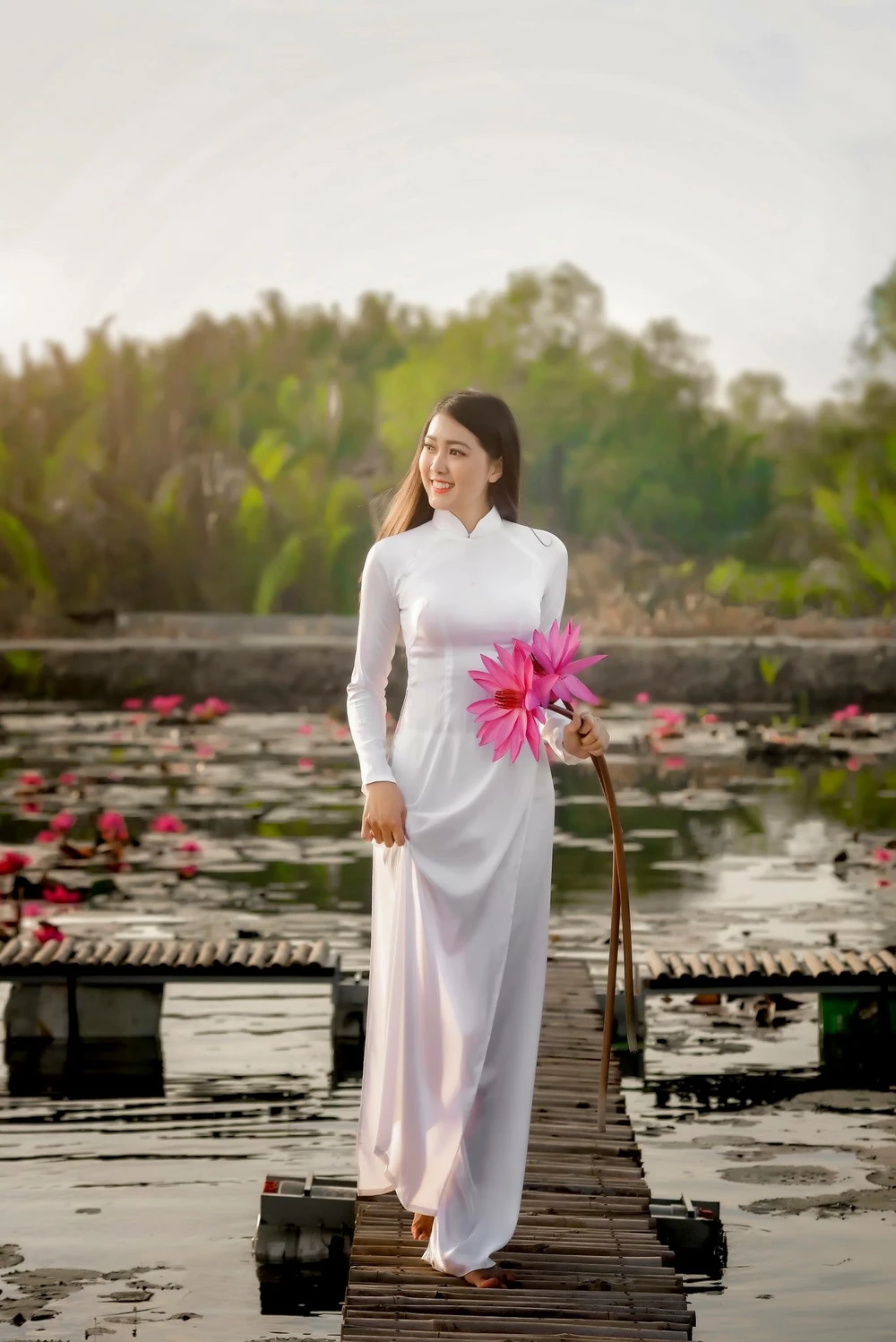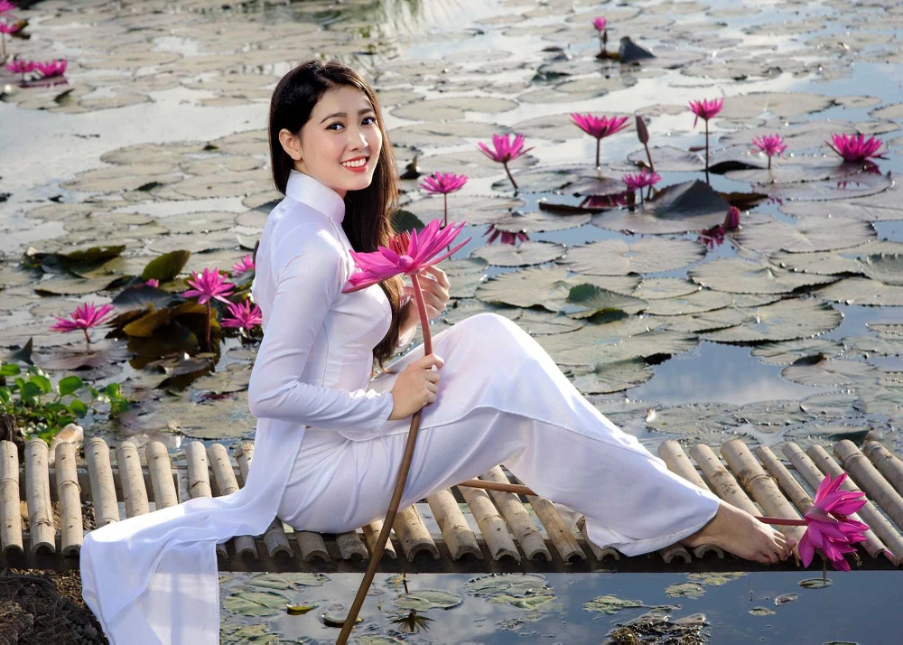 Đặt biệt, Hoa được mọi người gọi với cái tên “cô gái dành cả thanh xuân để chụp ảnh với áo dài”. Nói về tên gọi này, Hoa chia sẻ rất tự tin khi khoác lên mình bộ áo dài quốc phục Việt Nam.