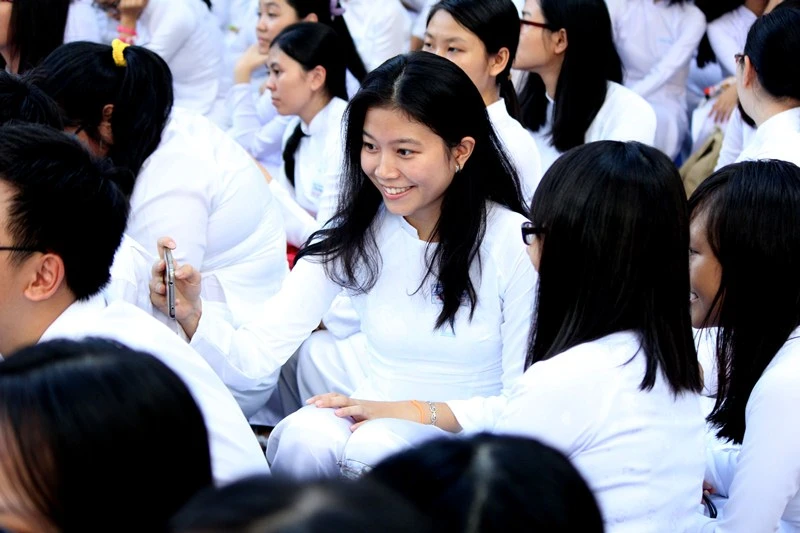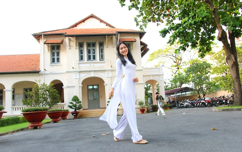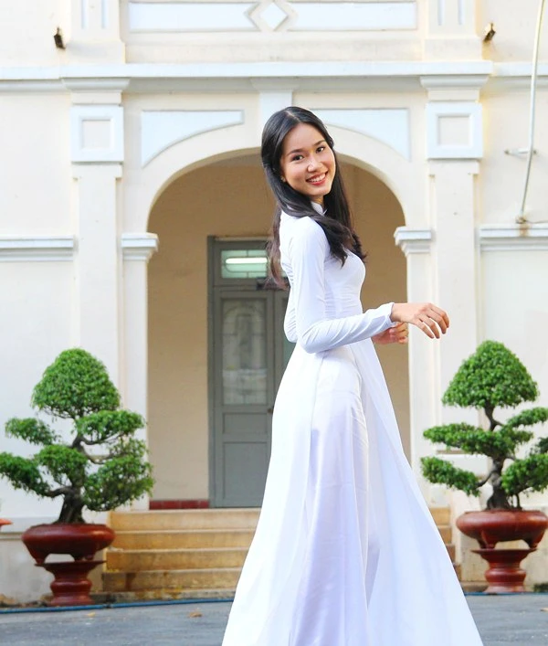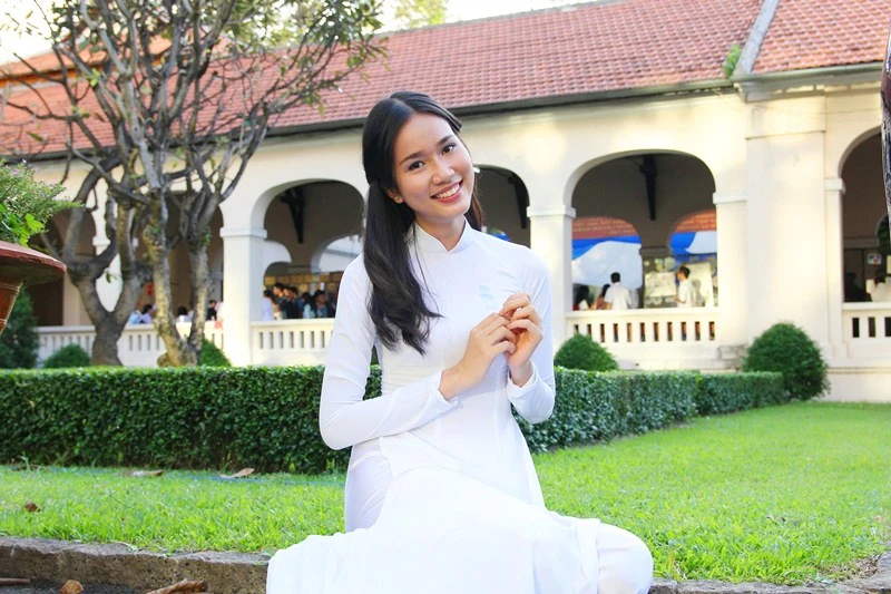 Miss Áo dài Nữ sinh Việt Nam 2015 Đặng Ngọc Phương Anh điệu đà trong ngày 20-11. Ảnh: HOÀNG GIANG