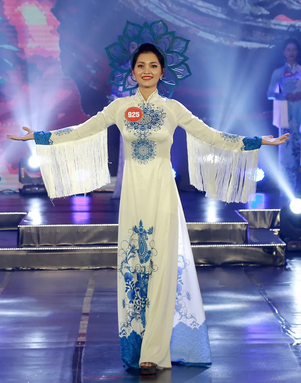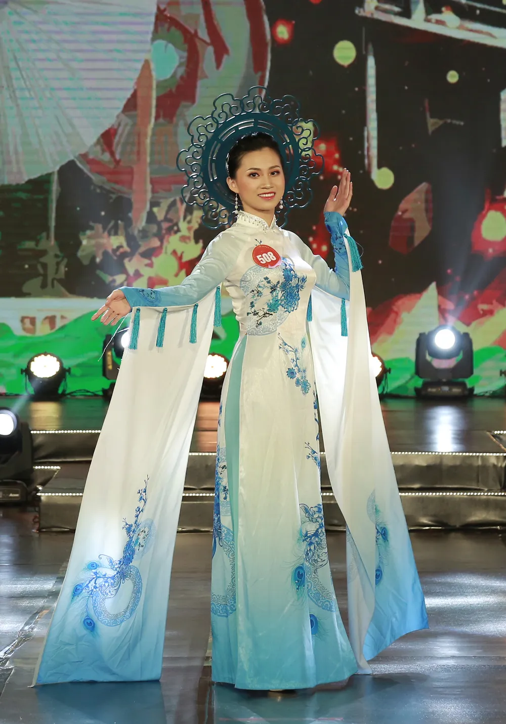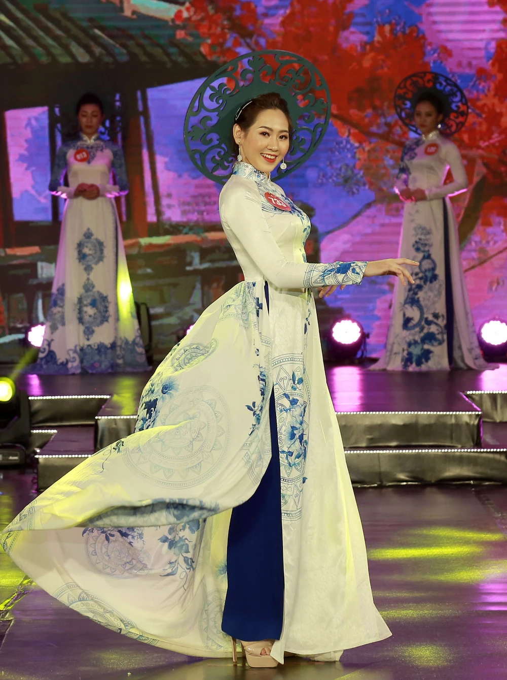 Các thí sinh rạng rỡ trong phần thi trang phục áo dài.