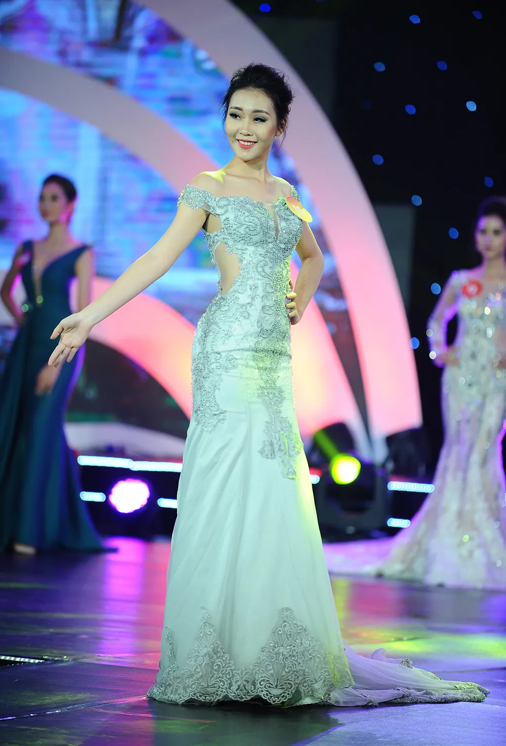 Sau phần thi áo dài, 45 thí sinh trình diễn trang phục dạ hội.
