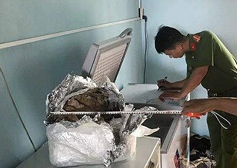Trước đó, lực lượng Cảnh sát Phòng chống tội phạm về môi trường của tỉnh phát hiện tại cơ sở sản xuất đồ gỗ mỹ nghệ của gia đình ông Huy đang ngâm rượu một con hổ cùng nhiều loại cây, củ khác. Cá thể còn lại (nặng khoảng 9 kg) đang ướp đông trong tủ lạnh.