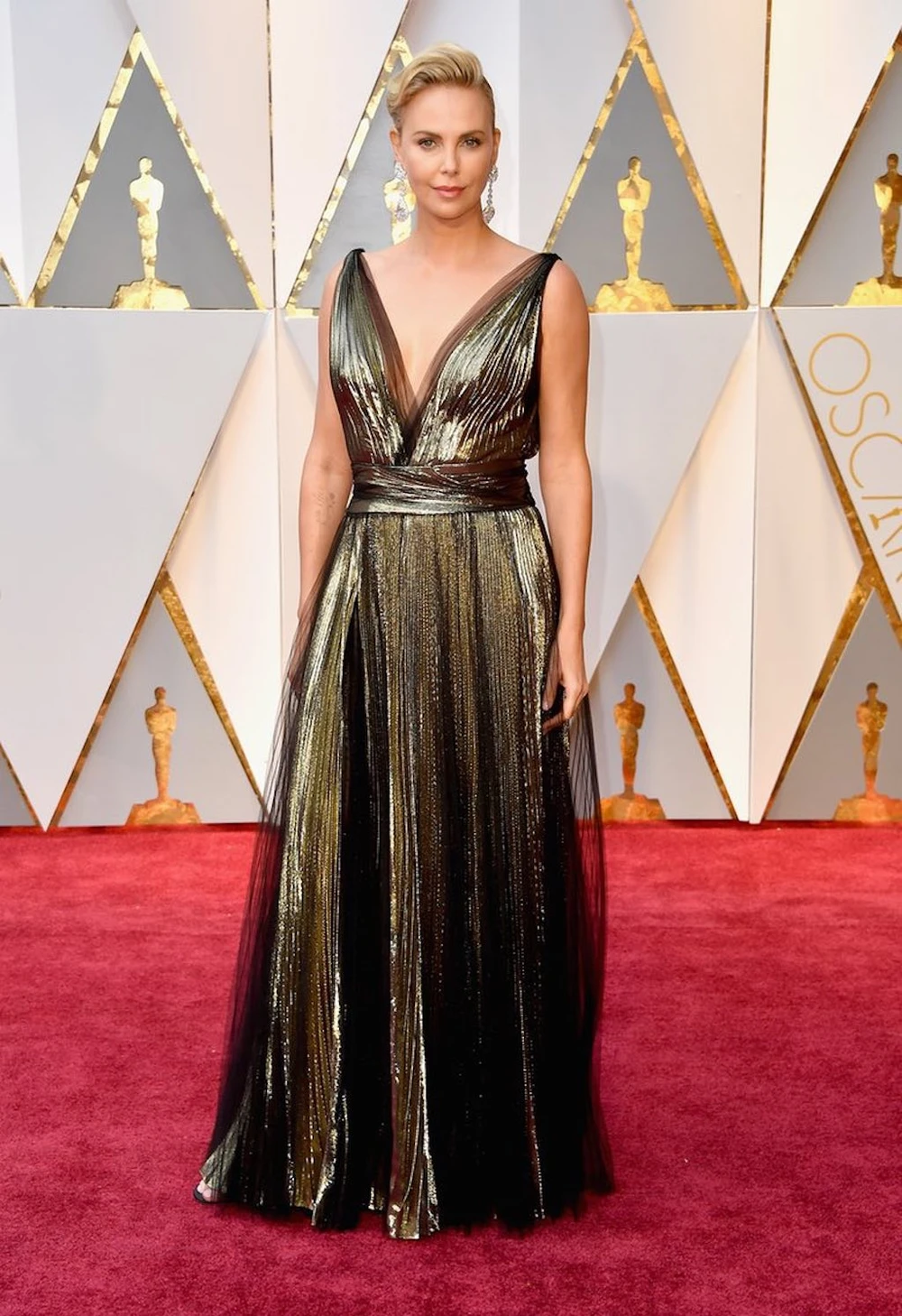 Charlie Theron trông như gái 18 với đầm Dior, cô từng được vinh danh tại Oscar ở hạng mục Nữ diễn viên chính xuất sắc nhất trong phim Moster.