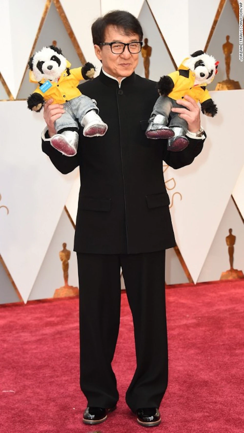 Thành Long ôm gấu bông trên thảm đỏ,