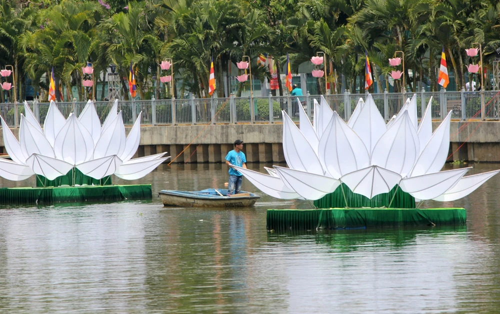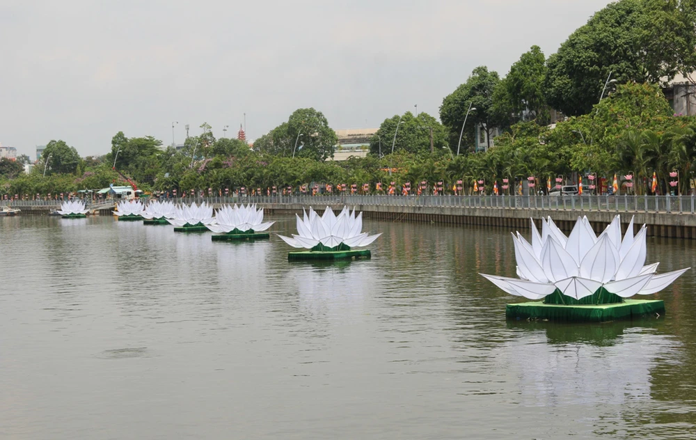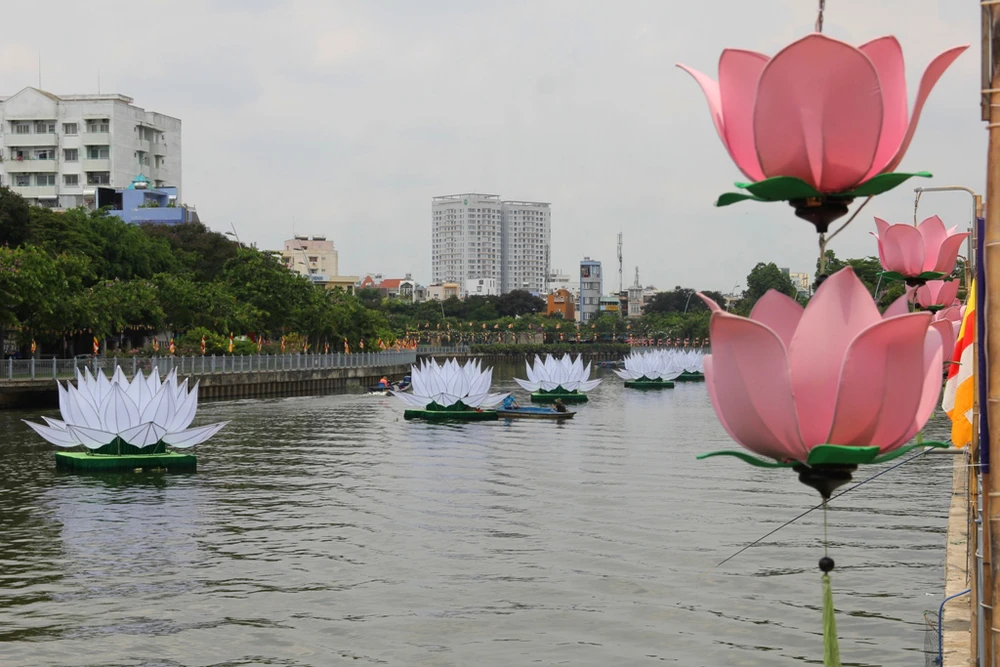 Việc hạ thủy bảy đóa sen trắng bắt đầu cho những hoạt động văn hóa kính mừng ngày Đản sanh của Đức Phật tại TP.HCM.