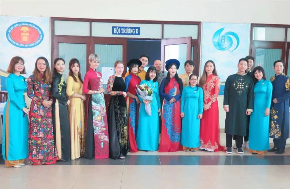 Sinh viên khoa Việt Nam học duyên dáng trong tà áo dài. Ảnh: PA