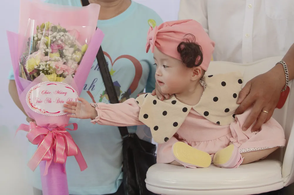 Thỉnh thoảng, Trúc Nhi cũng giao lưu, tương tác cùng với những người đến thăm bé.