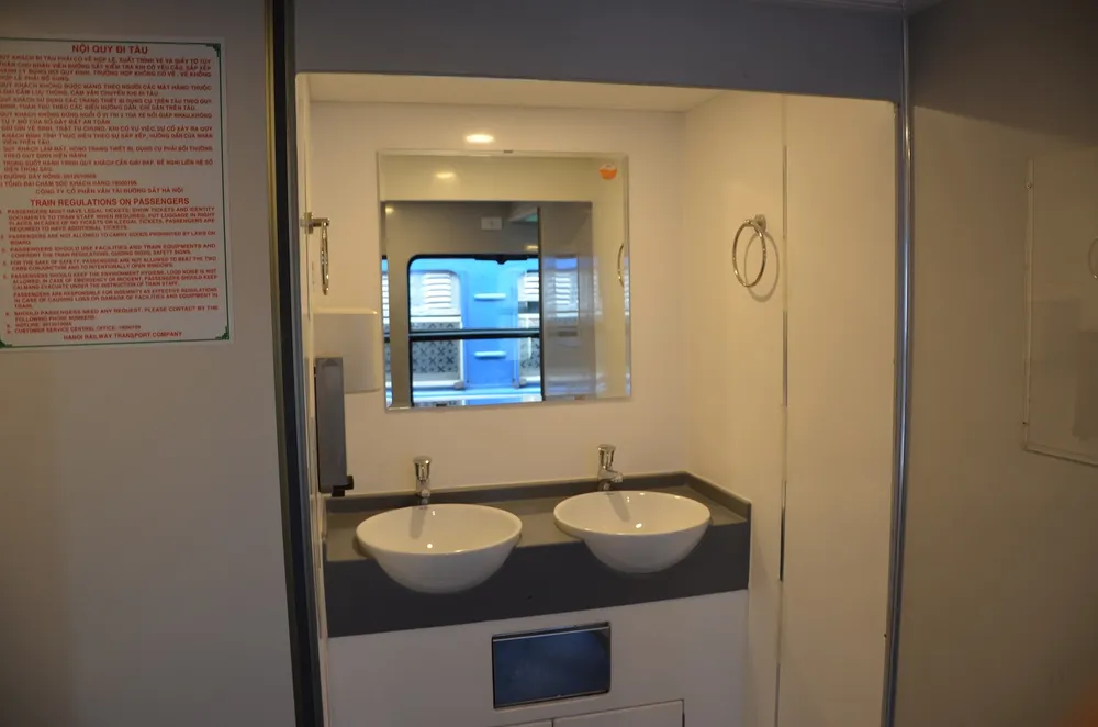 Buồng vệ sinh có điều hòa không khí, thiết bị vệ sinh tự hoại theo nguyên lý hoạt động của Mỹ, hệ thống xử lý chất thải đảm bảo tiêu chuẩn vệ sinh môi trường; bậc lên xuống toa xe được thiết kế phù hợp với những sân ga cao hoặc thấp rất thuận tiện trong việc ra/vào, lên/xuống của hành khách.
